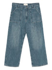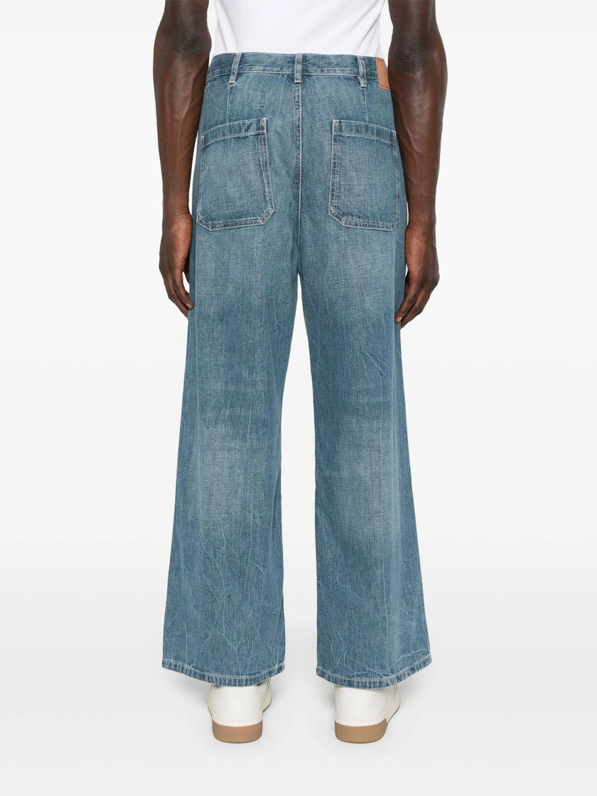 imperial blue concealed fly and button fastening belt loops two diagonal pockets to the sides two rear patch pockets