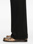 black concealed front button, hook and zip fastening belt loops two side slash pockets two rear button-fastening jetted pockets
