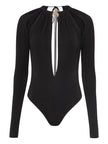 black draped neckline keyhole detail long sleeves shoulder cut-outs gold-tone clasp Just a reminder that this piece must be tried on over your own garments.