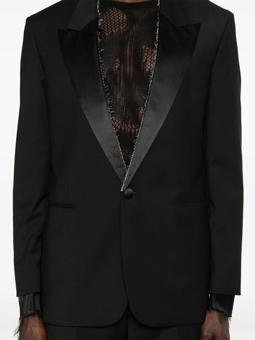 black front button fastening concealed fly and button fastening shoulder pads American rear vent