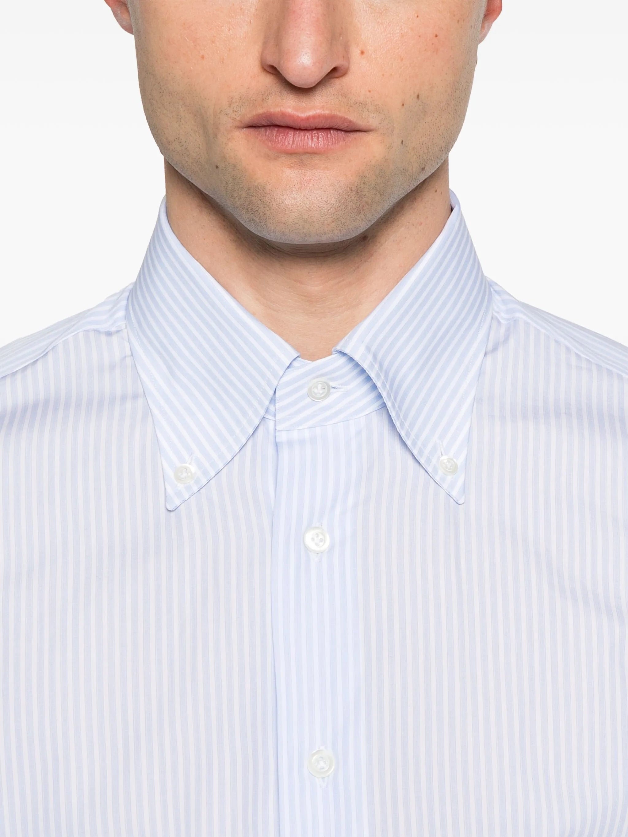 light blue front button fastening button-down collar buttoned-cuff sleeves curved hem