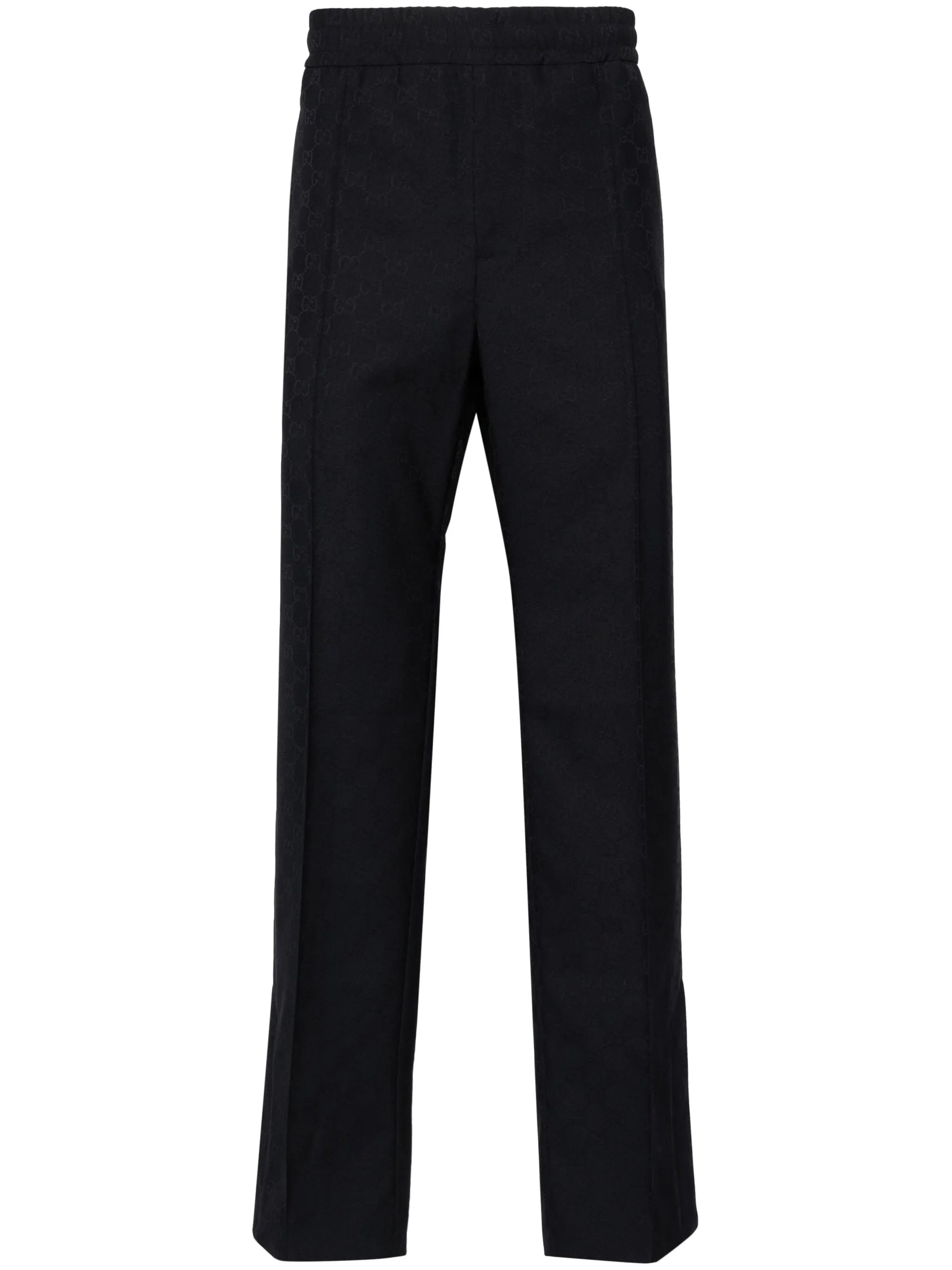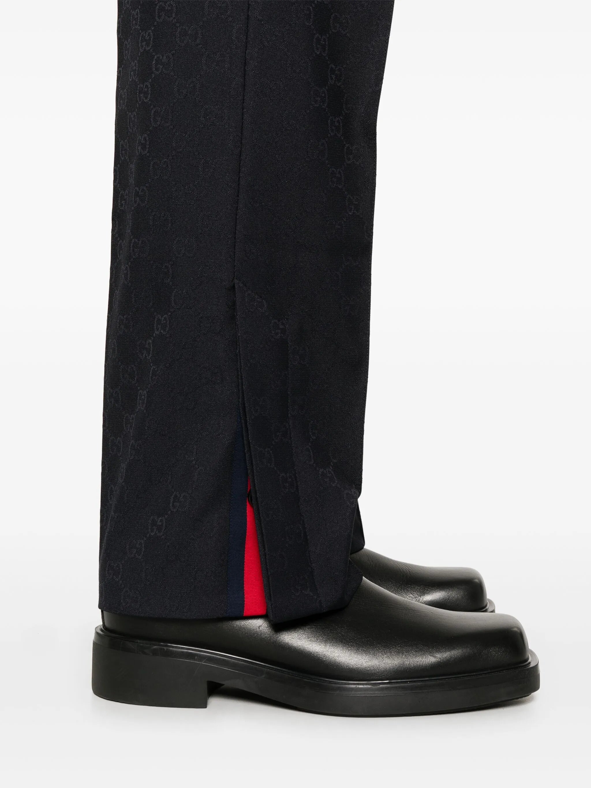 midnight blue all-over GG Supreme jacquard two side welt pockets front exposed-seam detailing two rear welt pockets full-length side button-fastening slits straight leg front concealed zip fly fastening elasticated waistband with internal drawstring