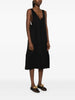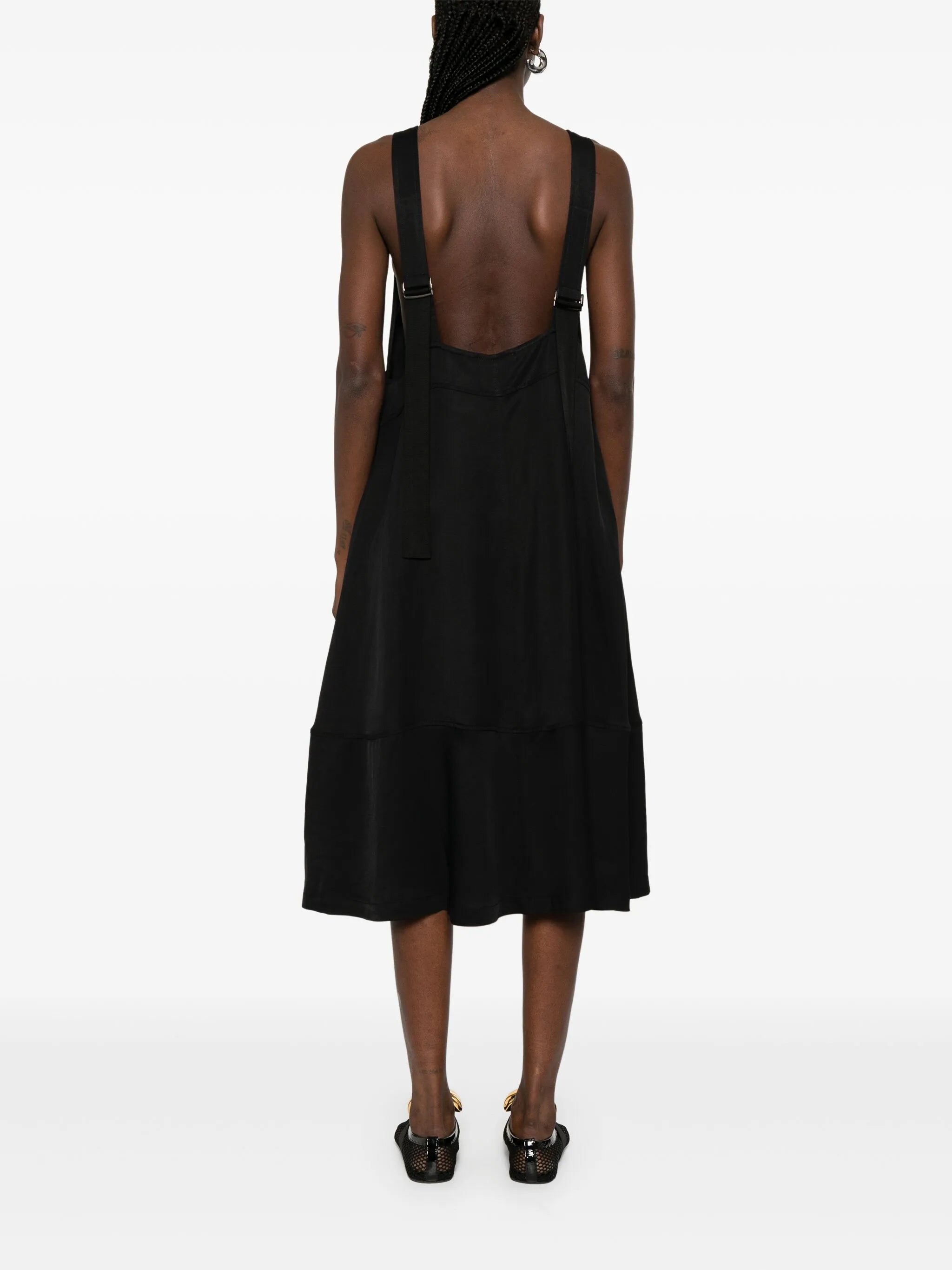 black two adjustable shoulder straps two side inset pockets V-neck square open back
