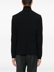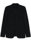 black stretch-design jersey texture front button fastening peak lapels long sleeves dart detailing two front jetted pockets Italian rear vents curved hem