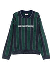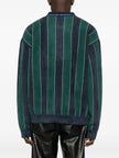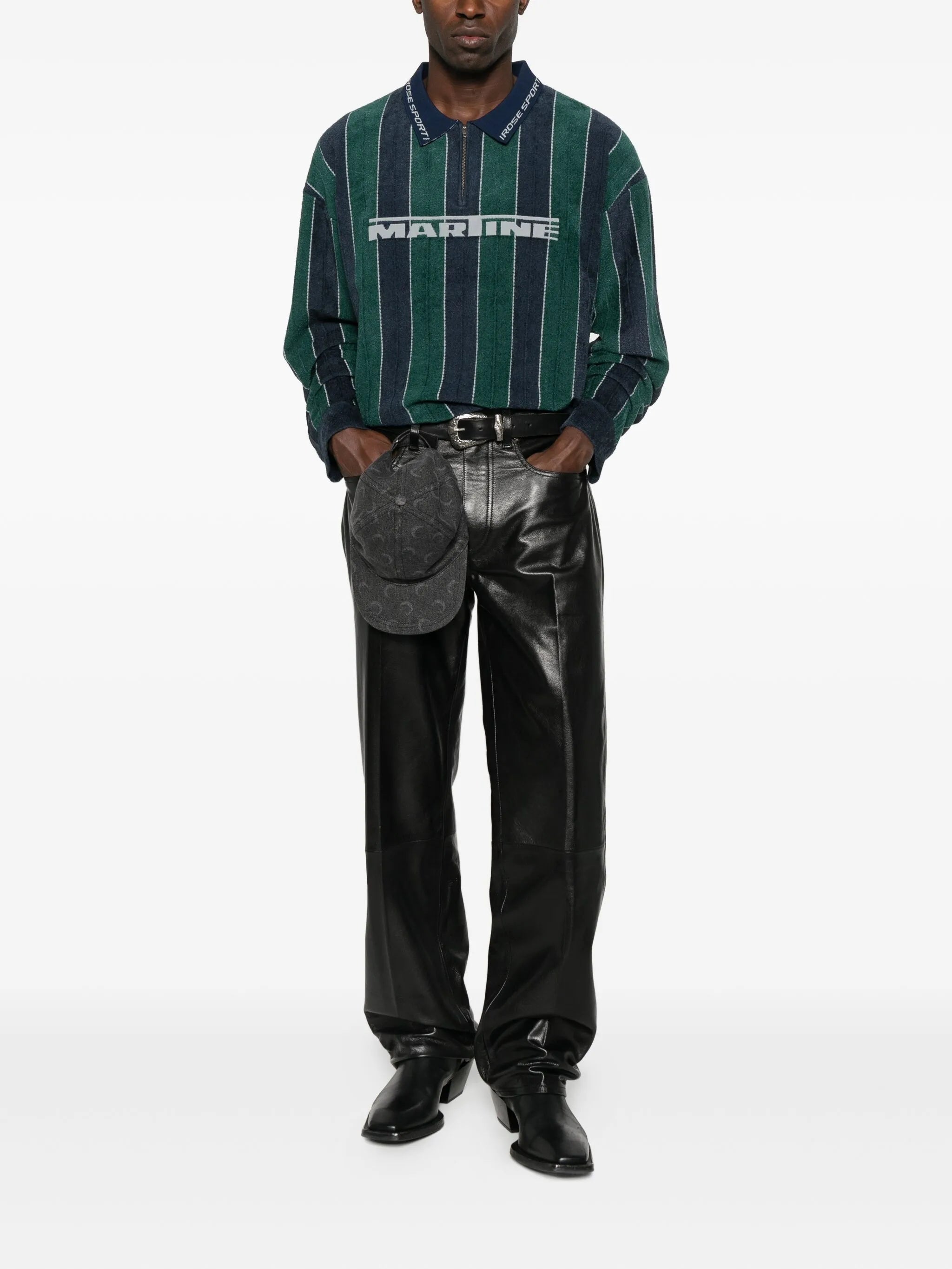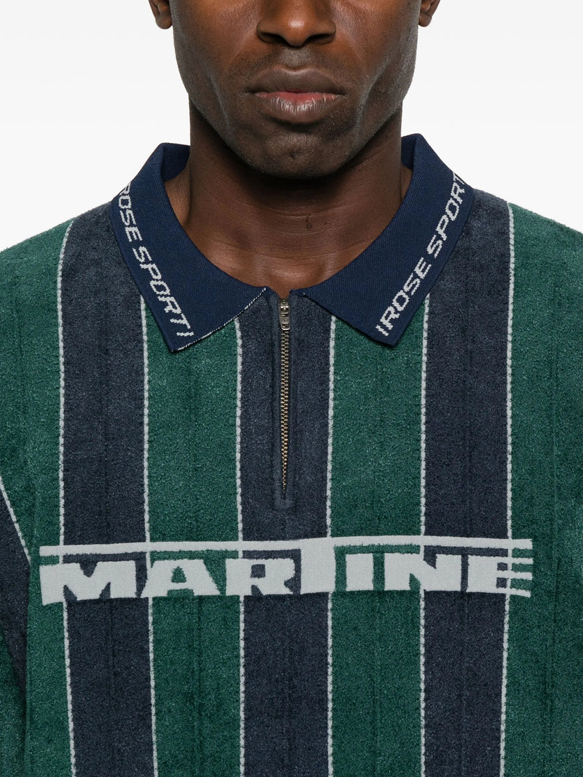 green navy striped pattern polo neck half zip fastening long sleeves ribbed cuffs 'marine' logo