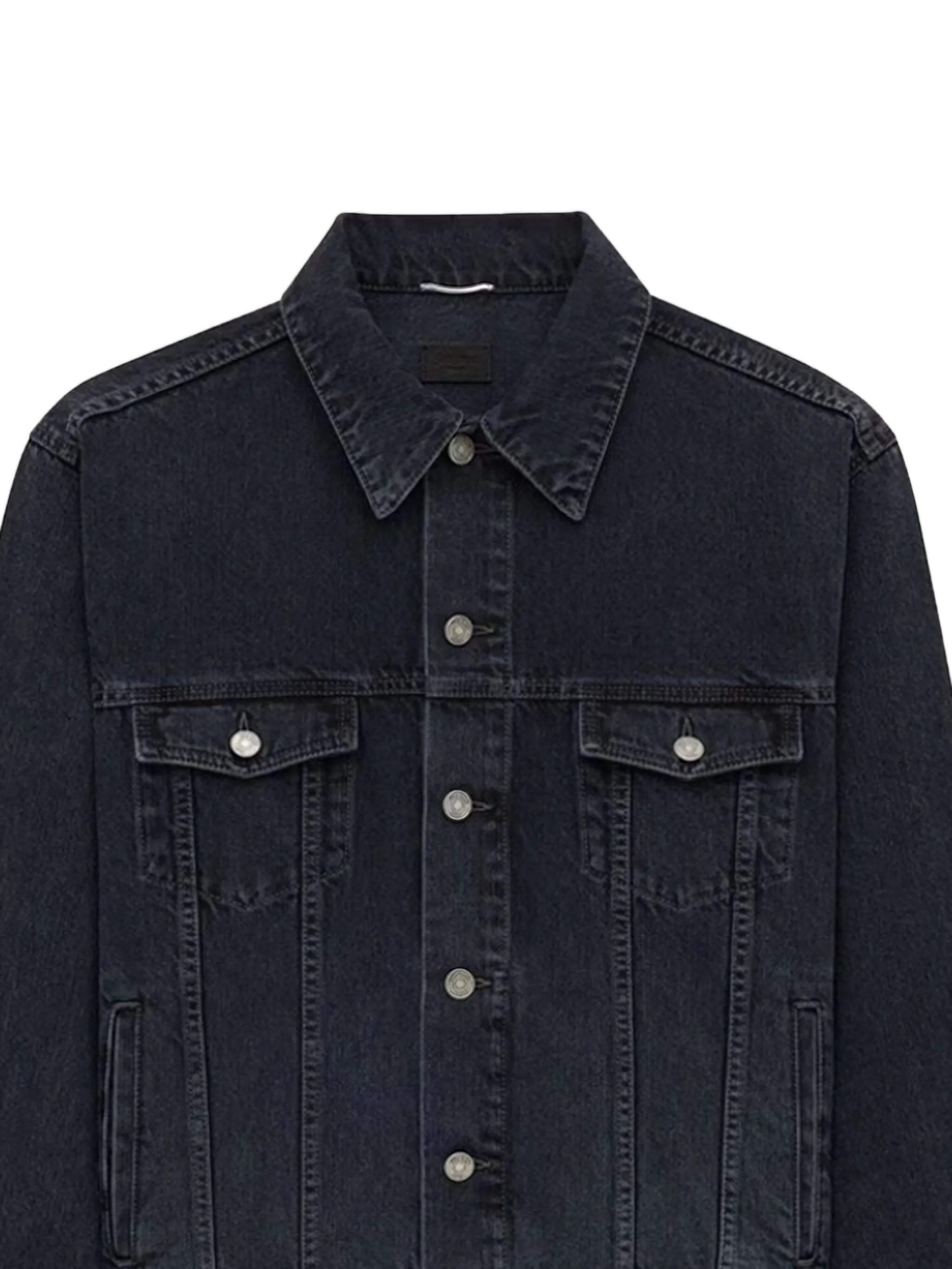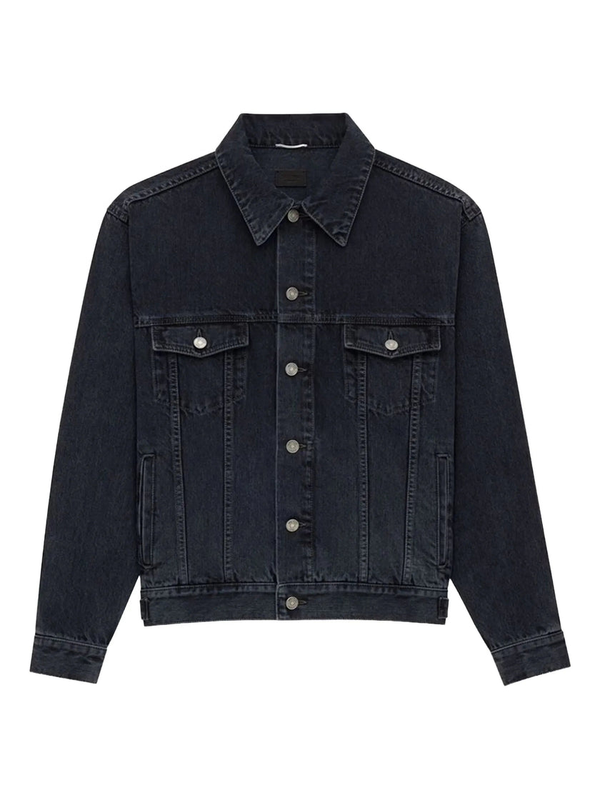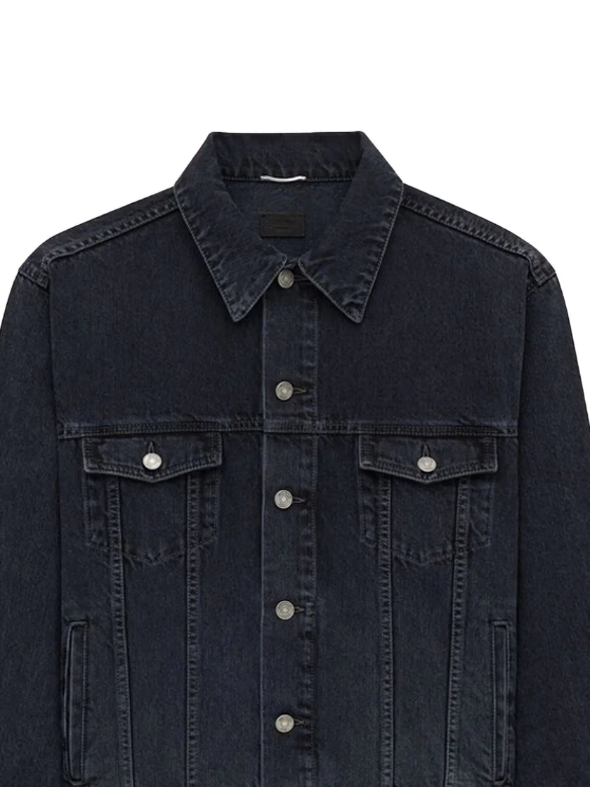 black front button fastening chest flap pockets side slit pockets long sleeves buttoned cuffs