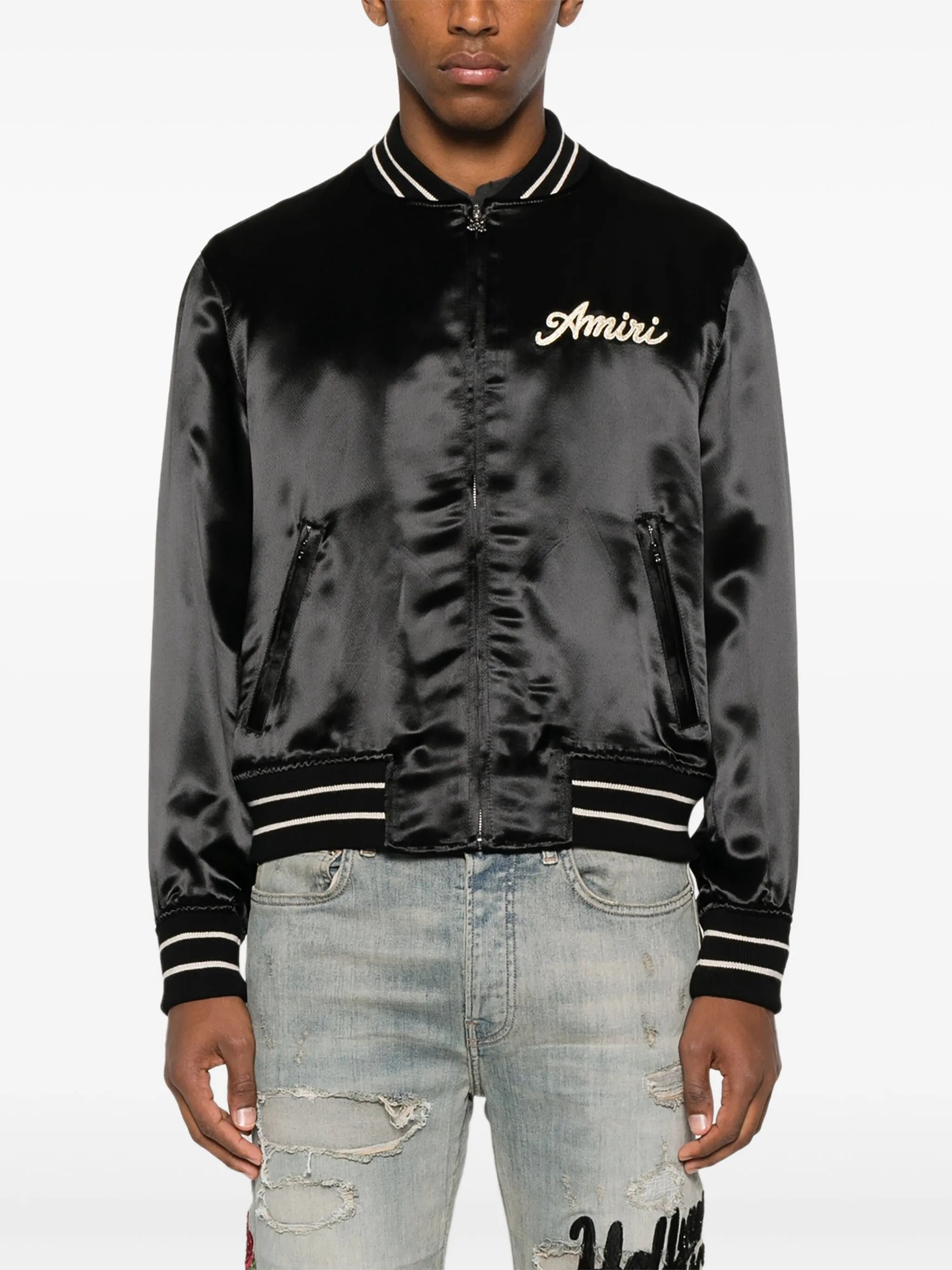 Amiri Embroidered Satin Bomber Jacket