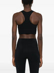 black stretch-design technical jersey round neck sleeveless reflective logo print to the front cropped racerback elasticated underband