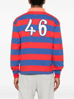 red/blue horizontal stripes long sleeves polo collar two button placket embroidered emblem