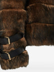 brown fur finish buckle detail collar long sleeves front zip fastening
