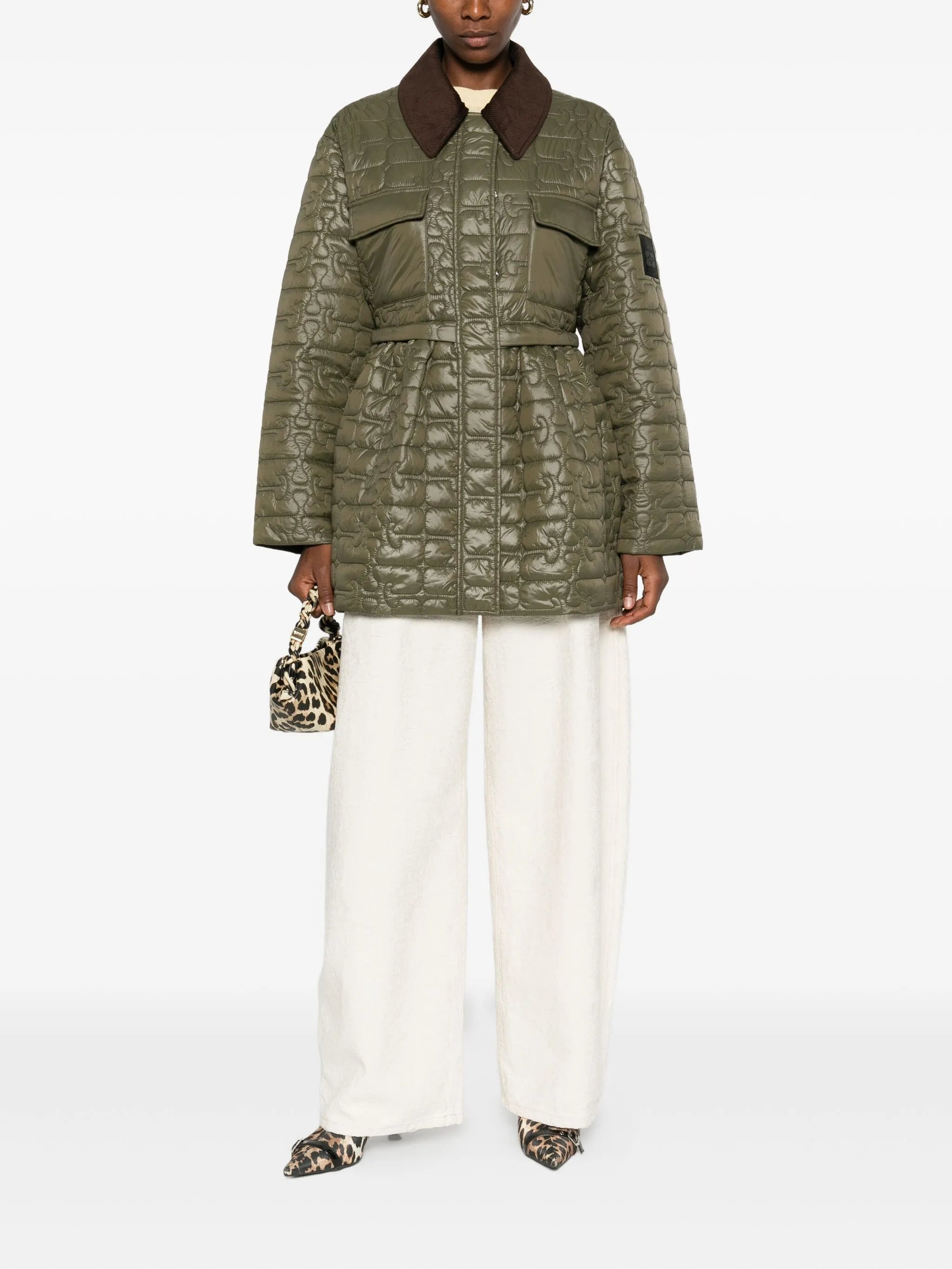 olive green corduroy collar two front pockets quilted elasticated hem logo patch