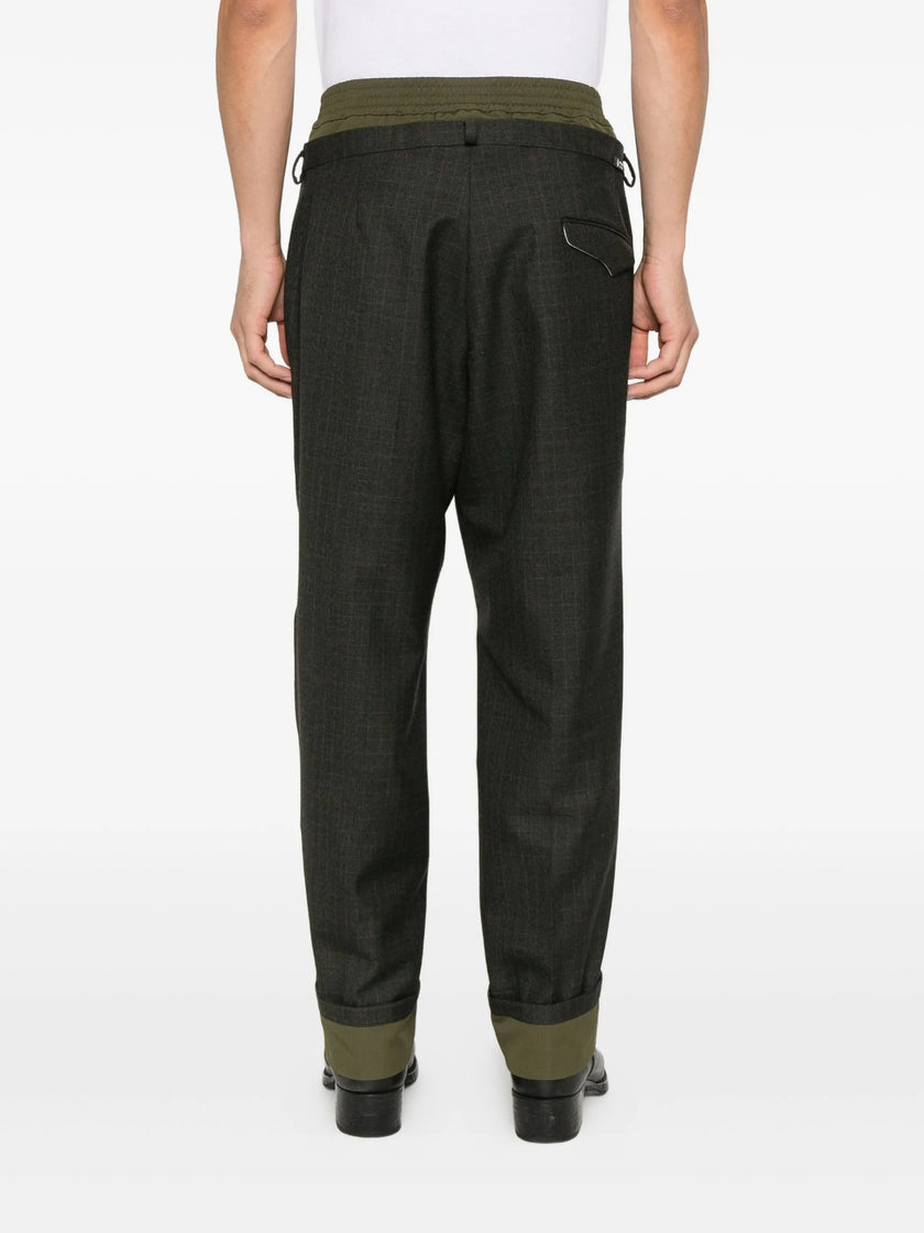 dark green check pattern elasticated waistband belt loops pleat detailing
