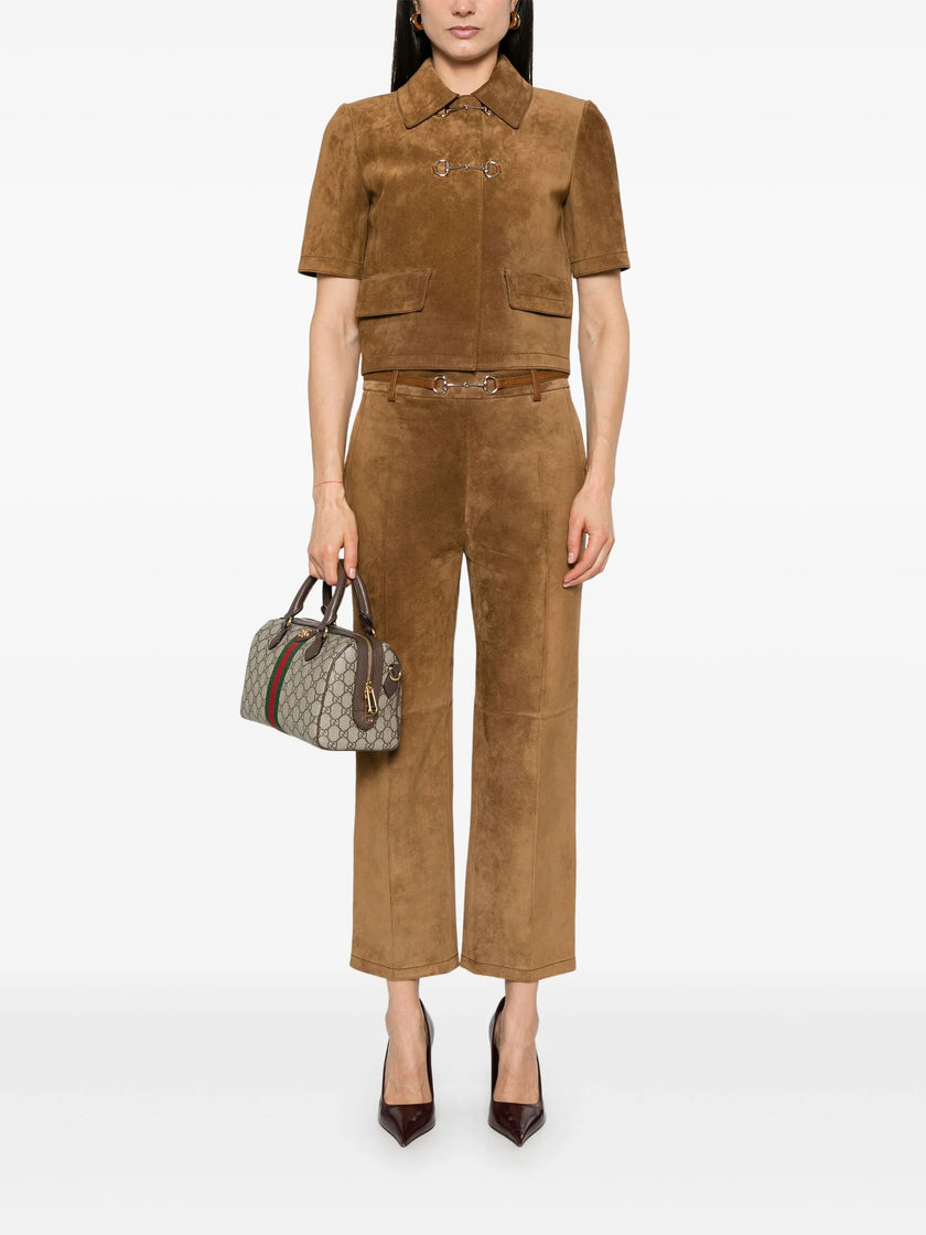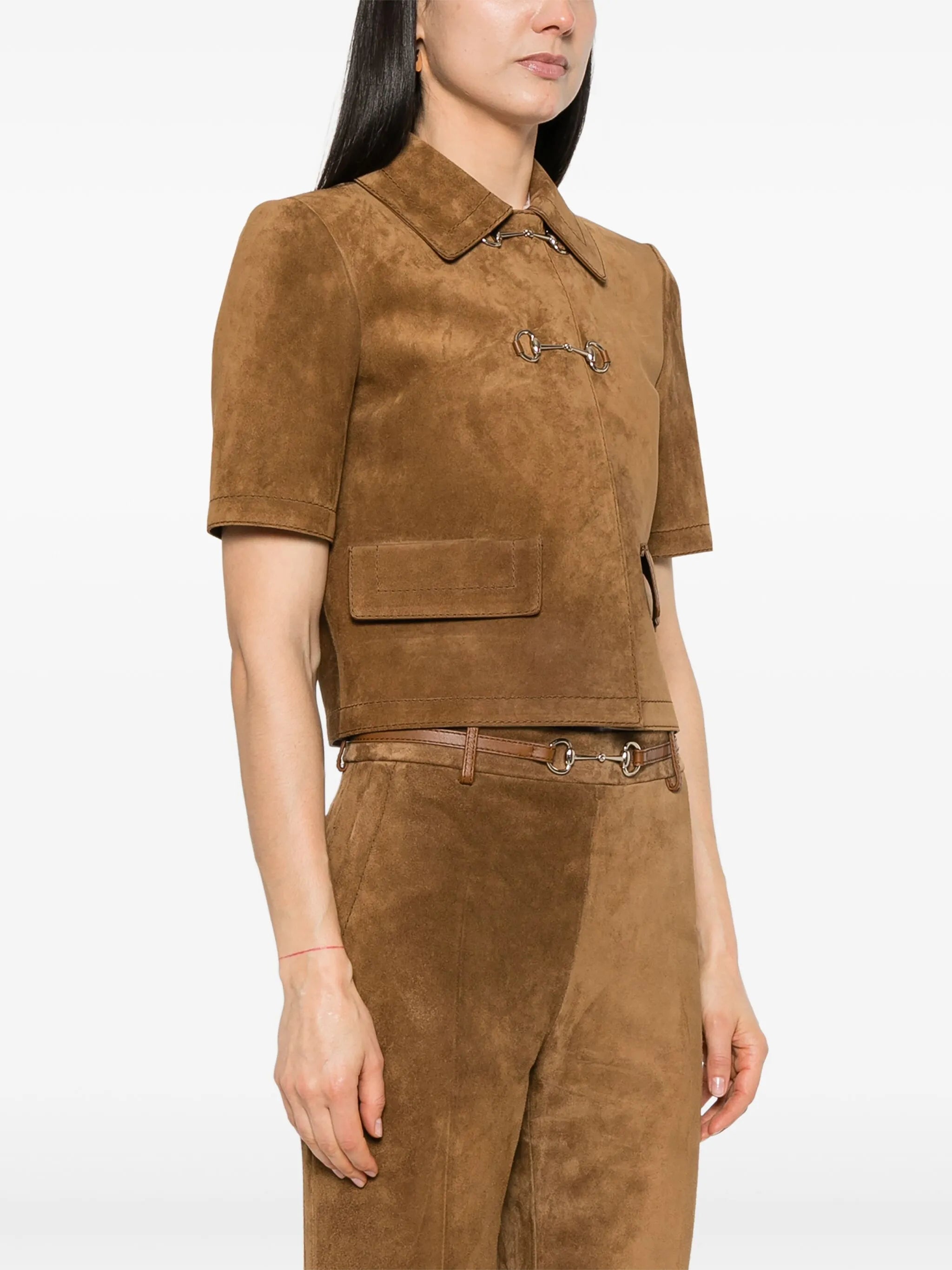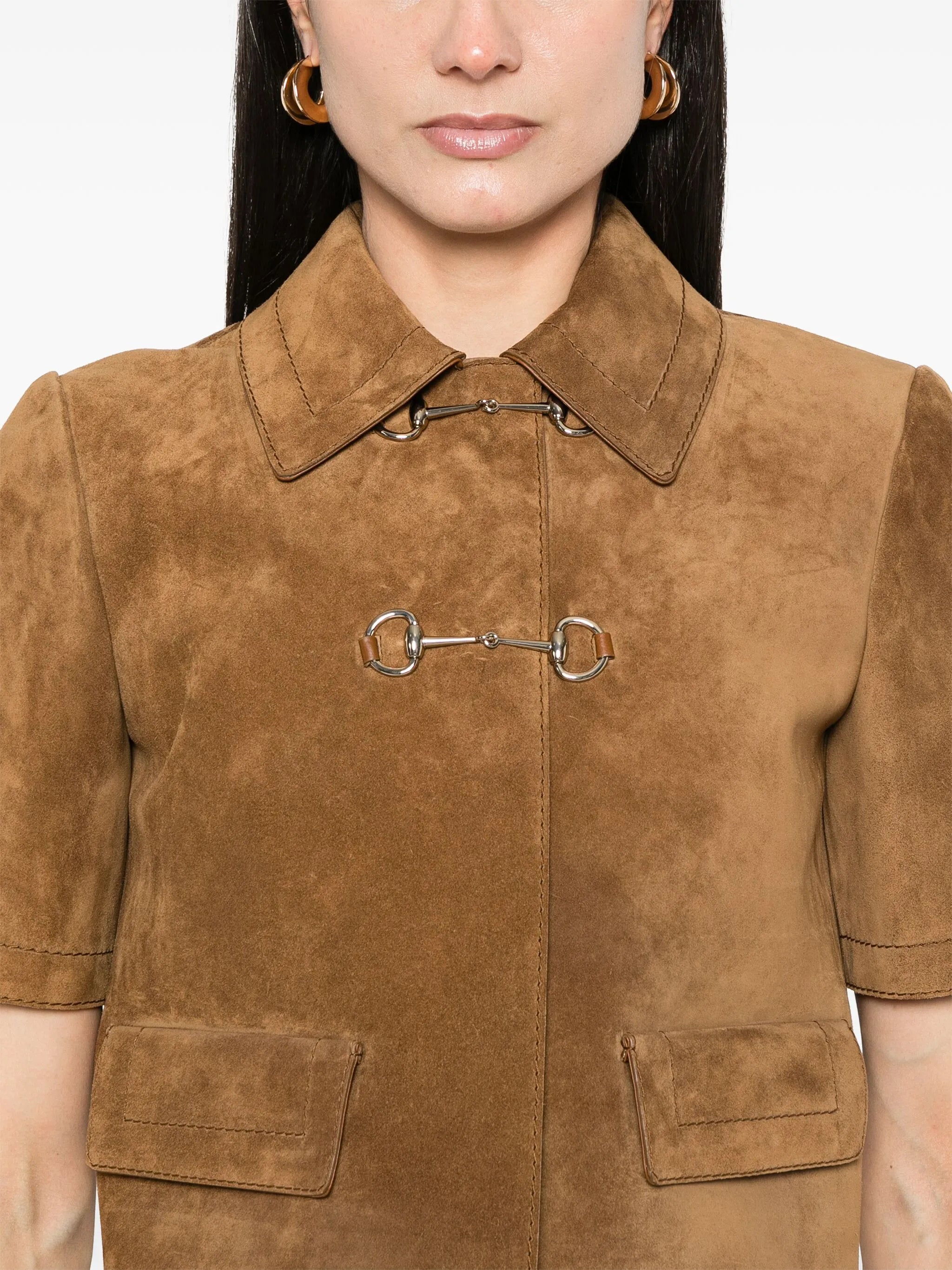 light brown front press-stud fastening two side flap pockets leather lining signature Horsebit detail
