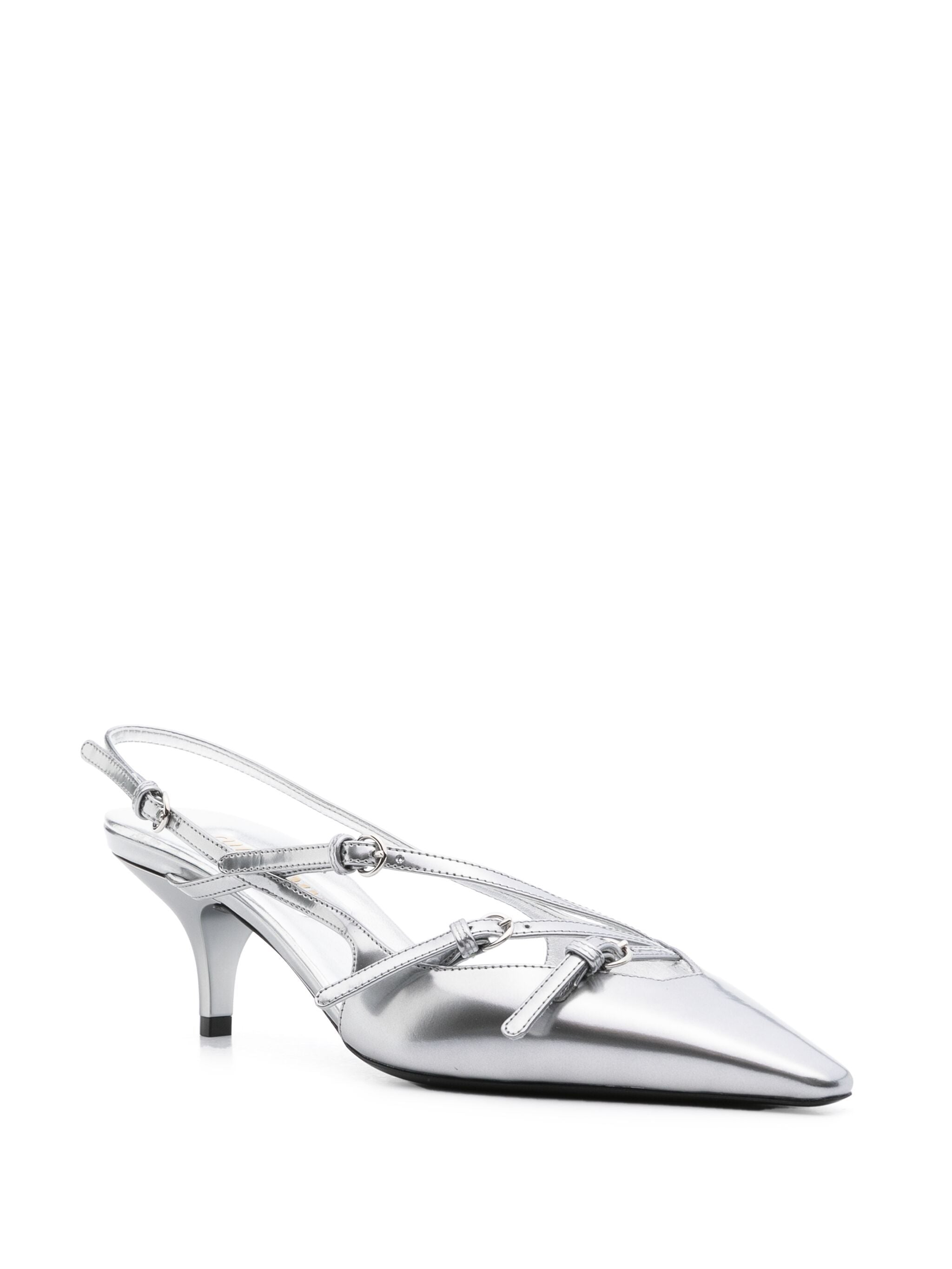 silver-tone calf leather side buckle fastening pointed toe branded leather insole buckle-fastening slingback strap mid heel leather and rubber sole