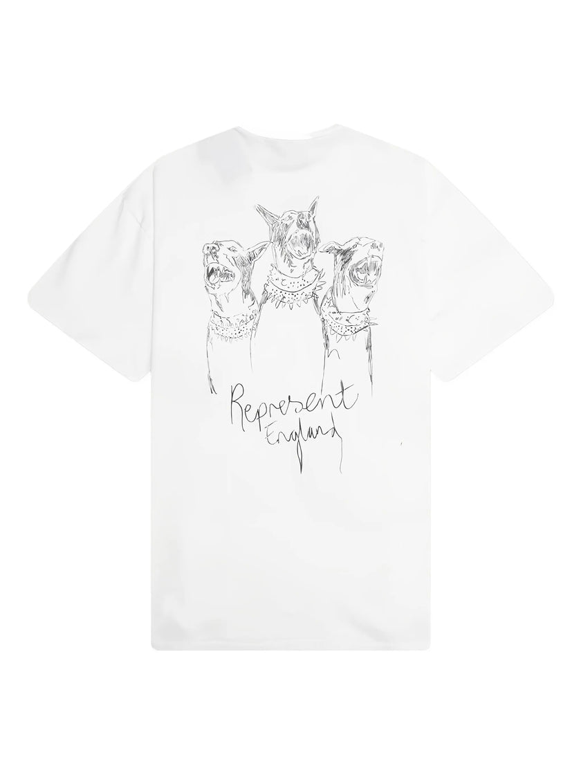 white hand-drawn dog motif short sleeves crew neck Represent England text
