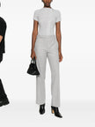 light grey striped pattern belt loops straight leg concealed fastening side seam pockets
