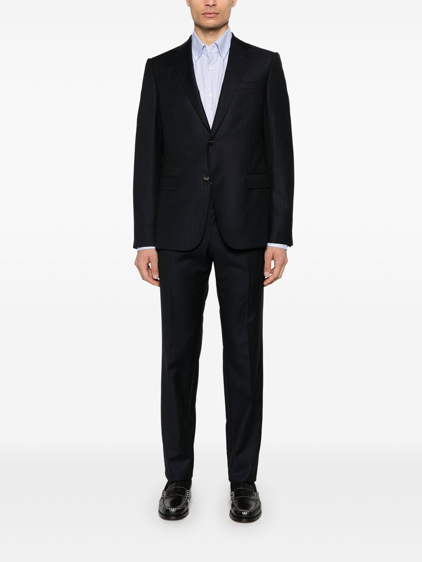 blue/white cotton interlock weave button-down collar long sleeves buttoned cuffs logo patch to the side curved hem