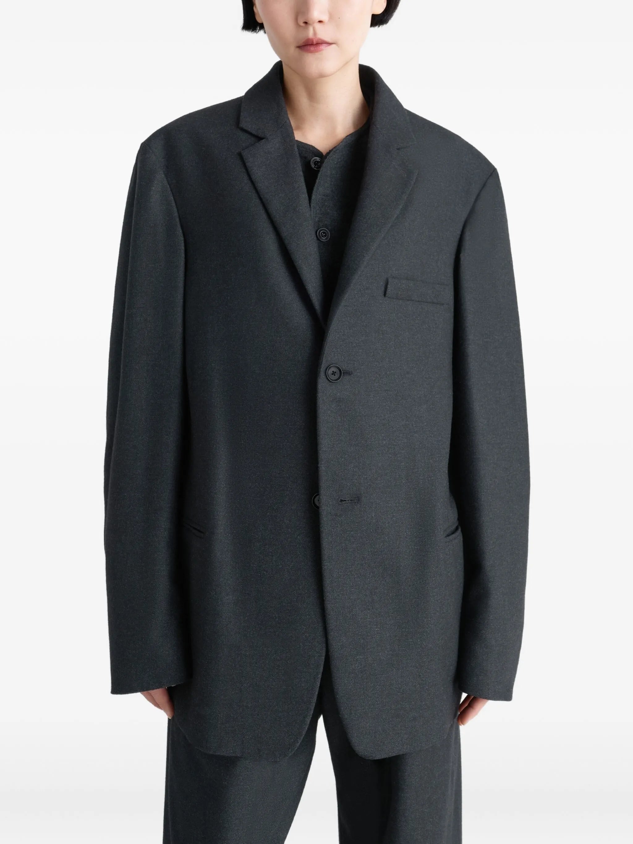 grey long sleeves chest pockets single-breasted closure welted pockets