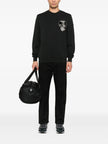 black cotton crew neck long sleeves embroidered logo patch ribbed cuffs and hem