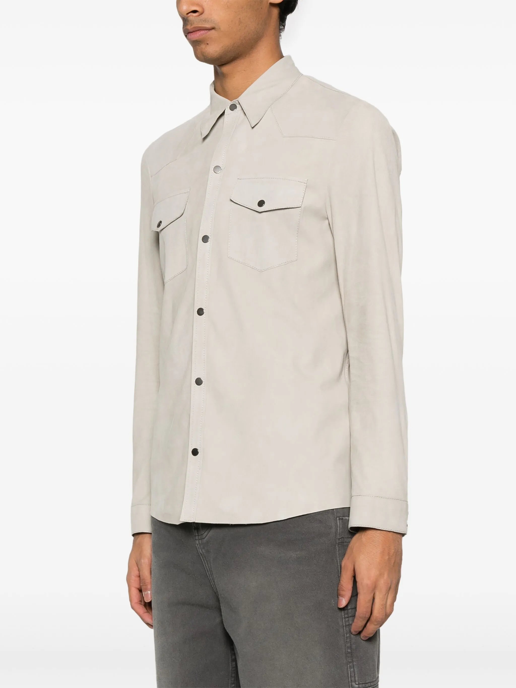 light beige front press-stud fastening two chest flap pockets long sleeves long sleeves