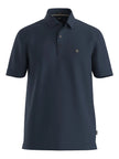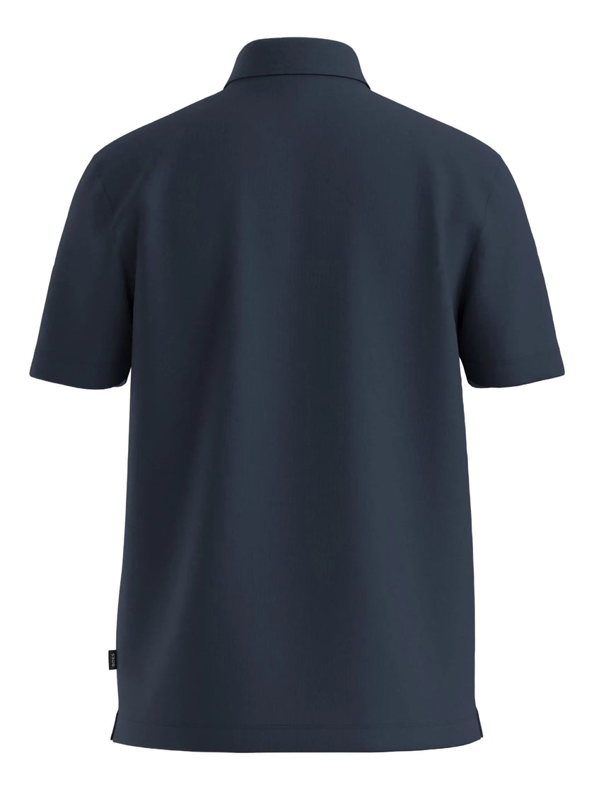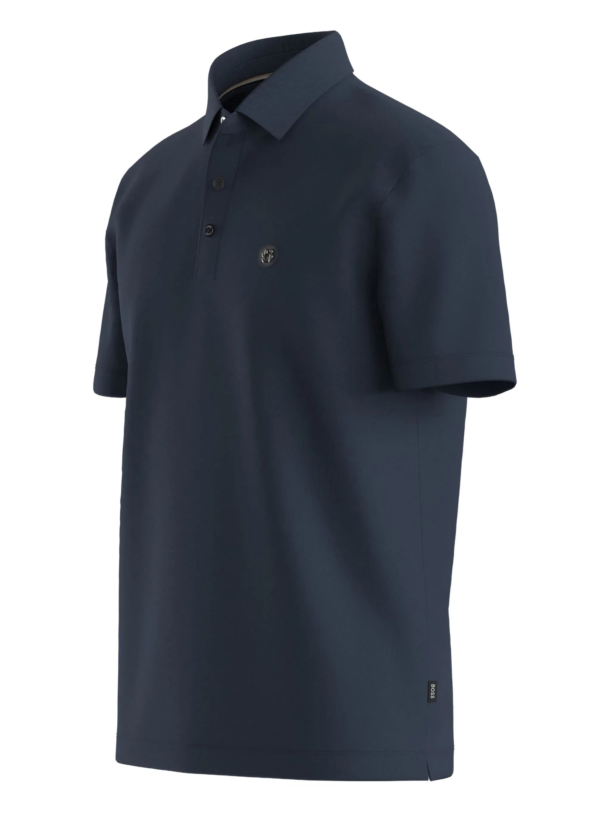 dark blue short sleeves two-button placket logo-patch cotton straight hem
