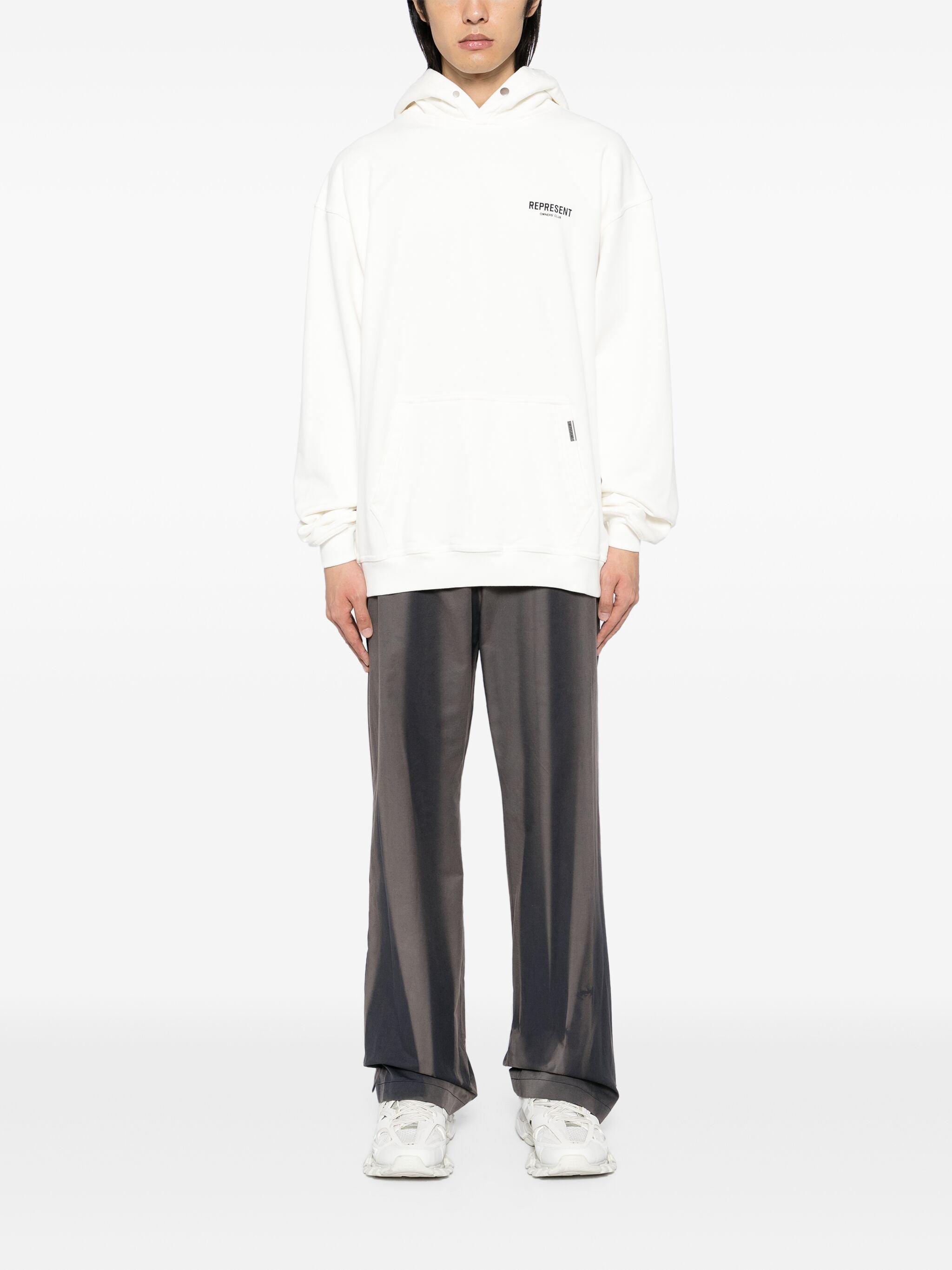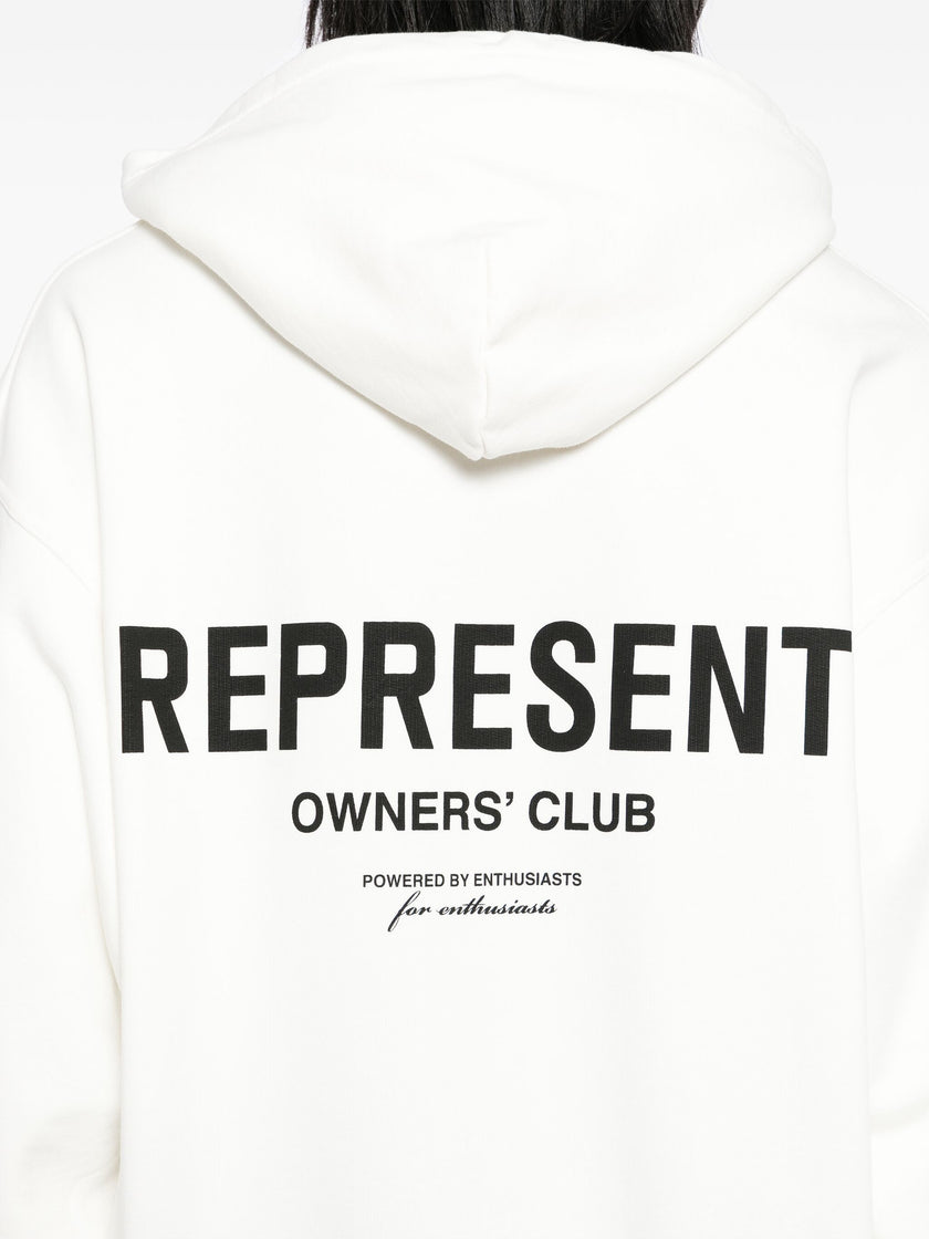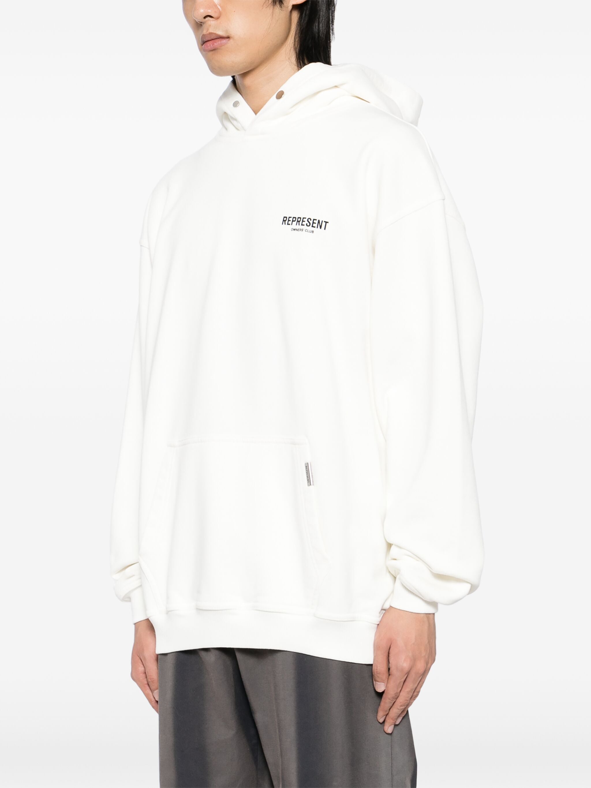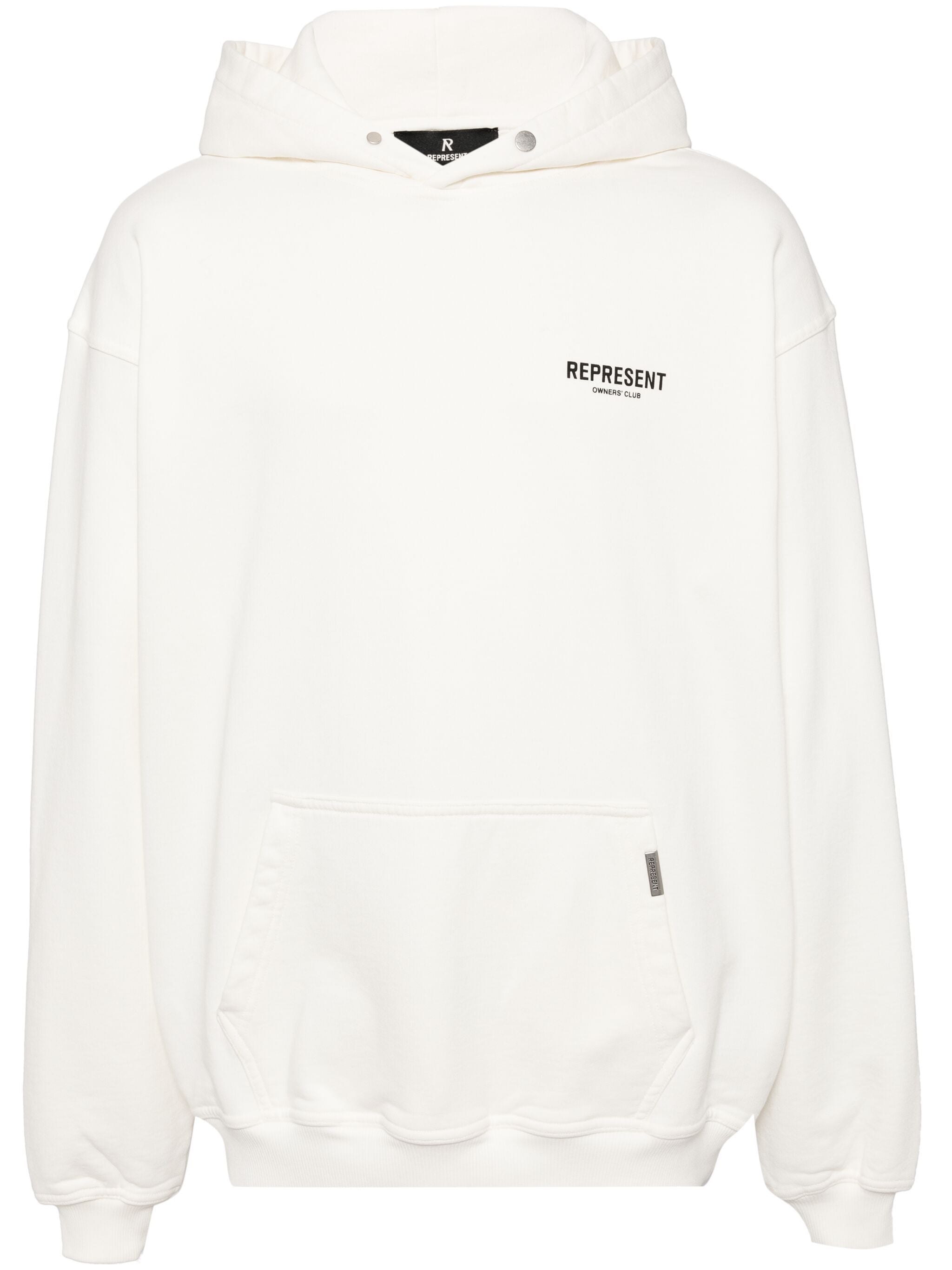 flat white cotton logo print at the chest classic hood logo print to the rear drop shoulder long sleeves ribbed cuffs and hem