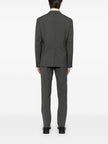 charcoal grey front button fastening concealed front button, hook and zip fastening central rear vent belt loops