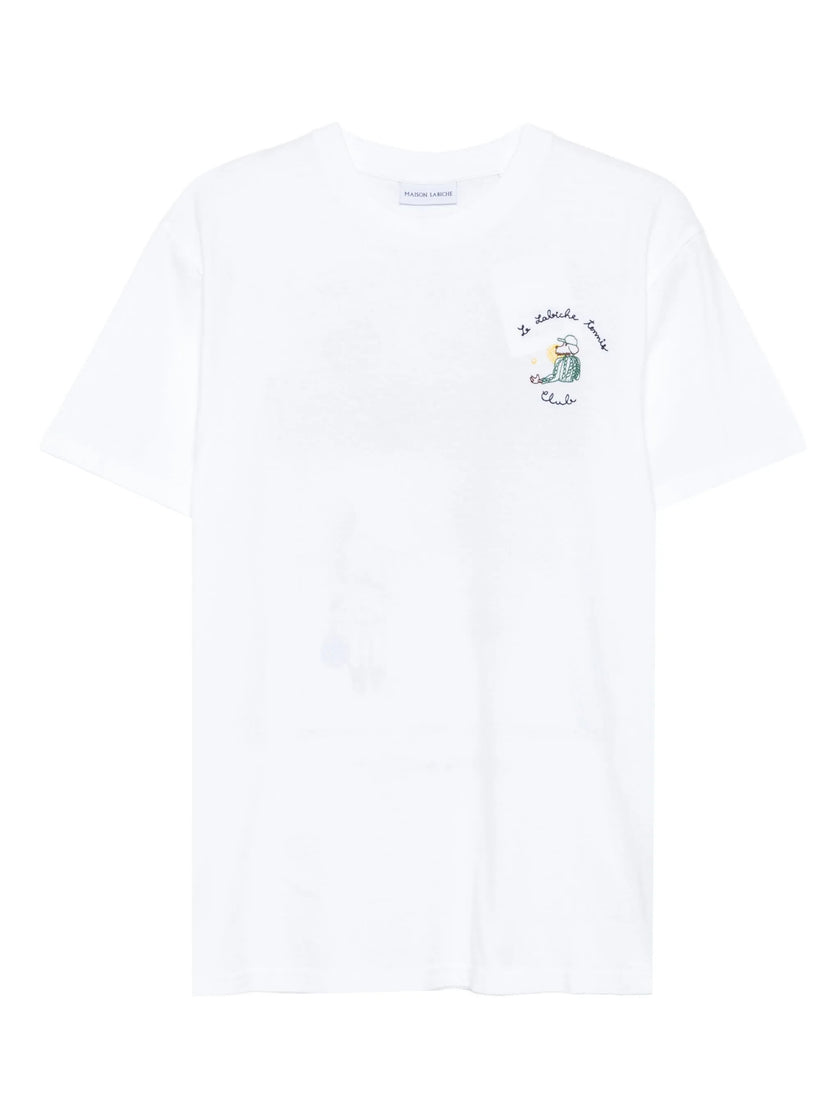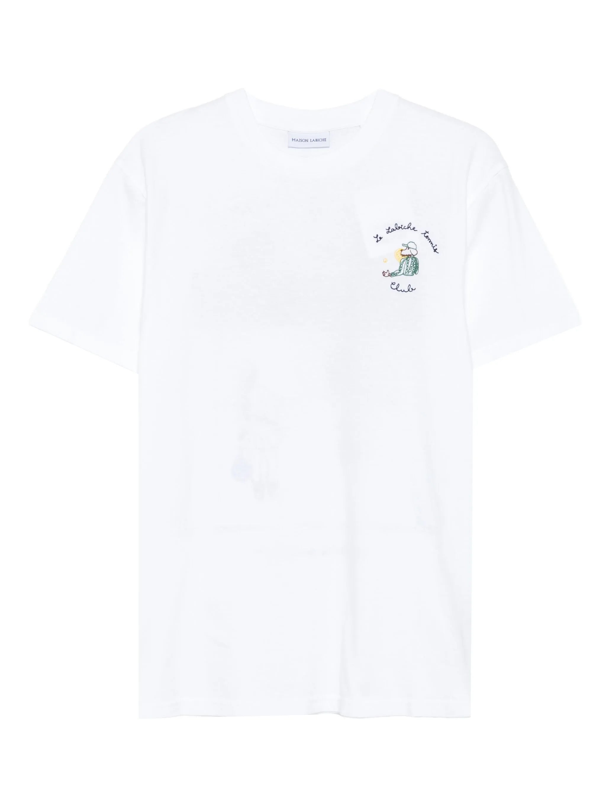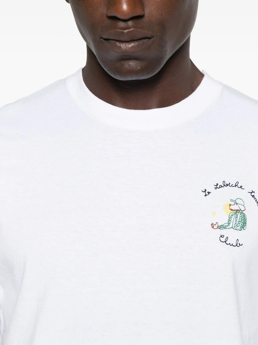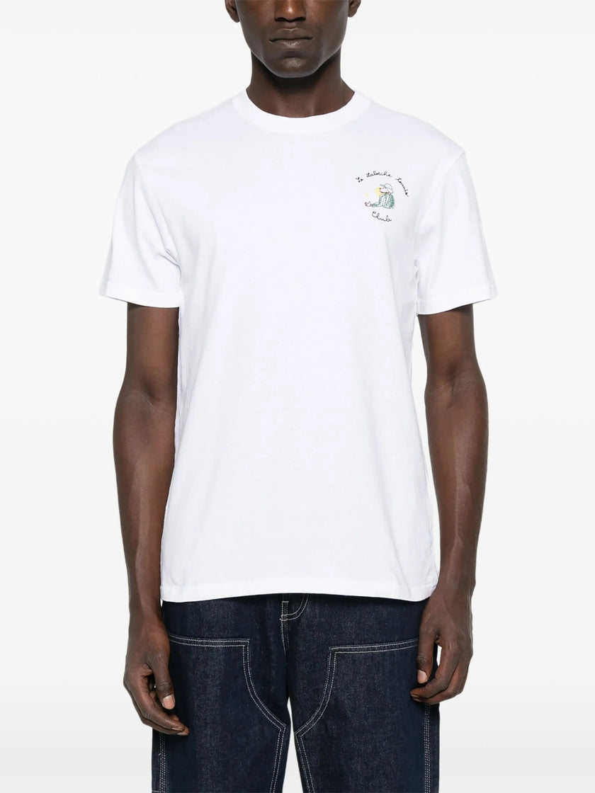 white embroidered cactus motif short sleeves crew neck organic cotton