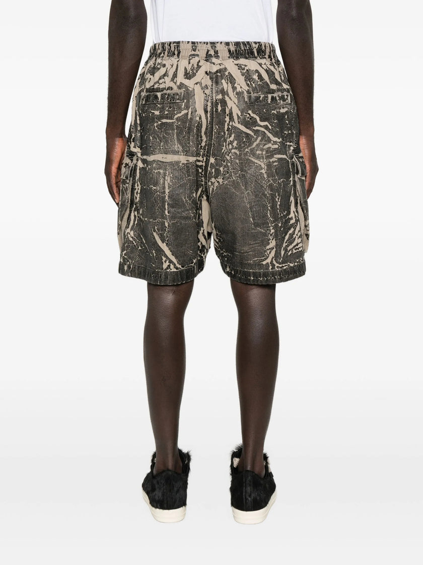 black washed foil print drawstring fastening two cargo pockets elasticated waistband zip fly