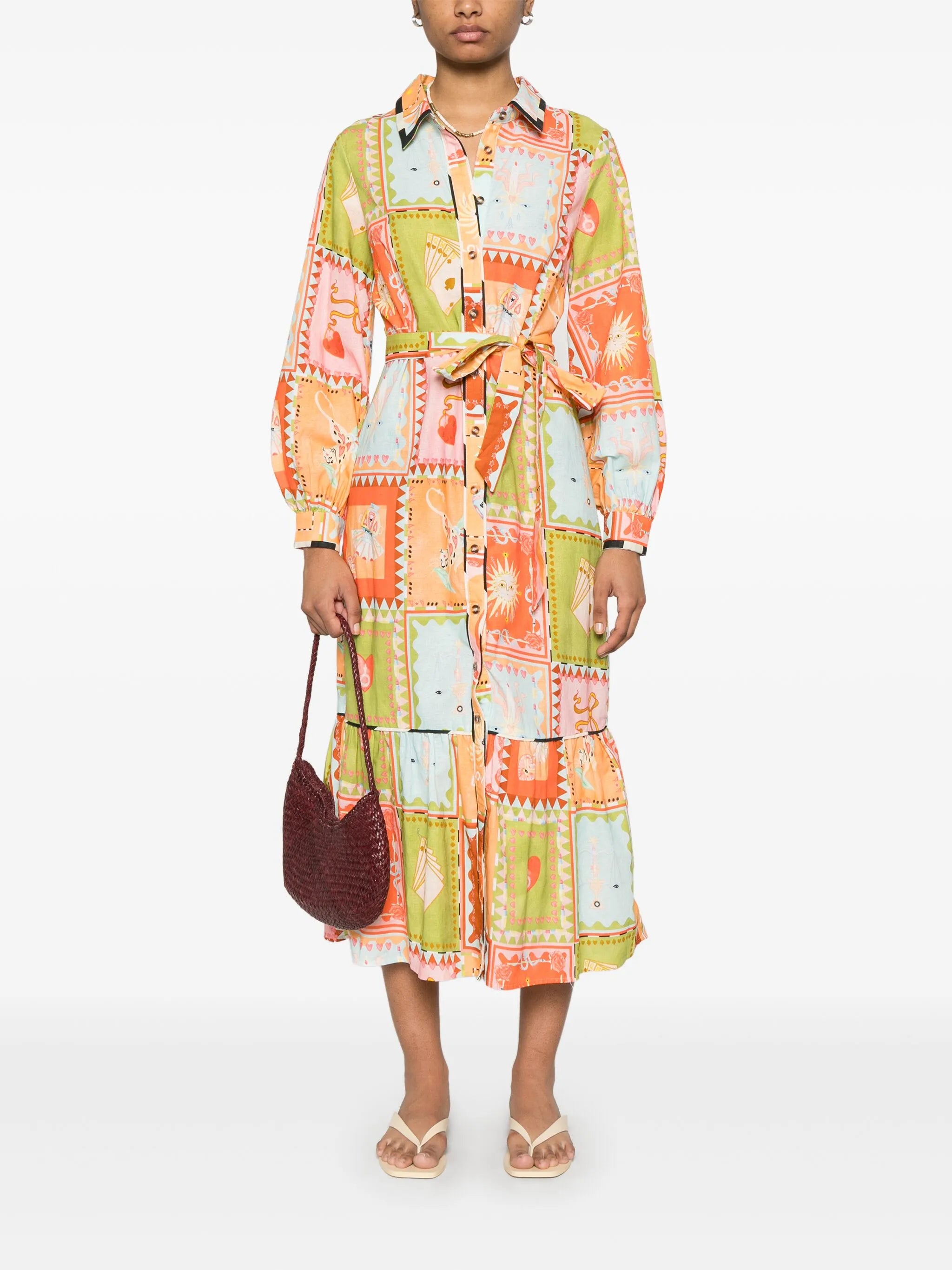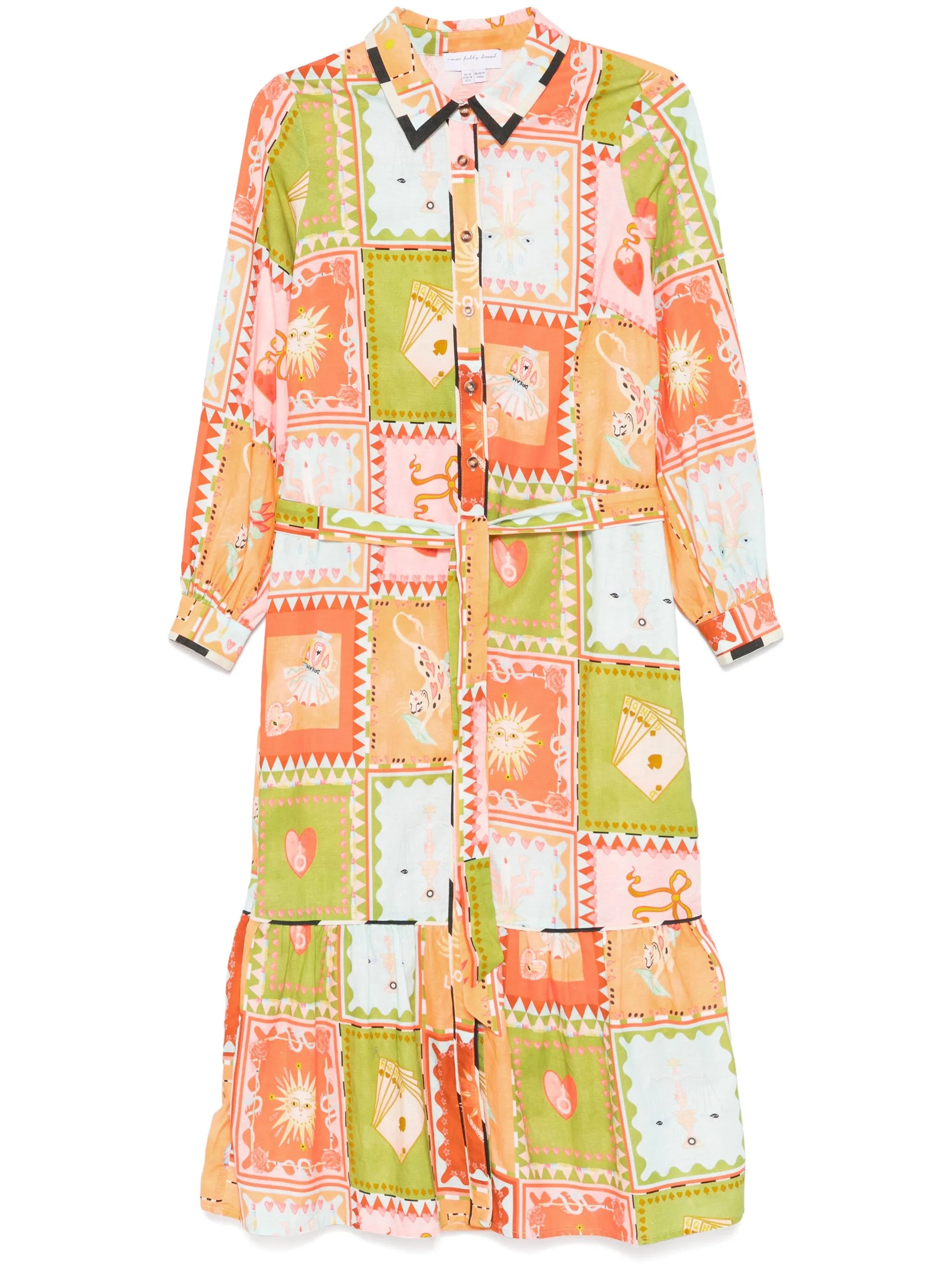 light green front button fastening detachable belt buttoned cuffs flared hem