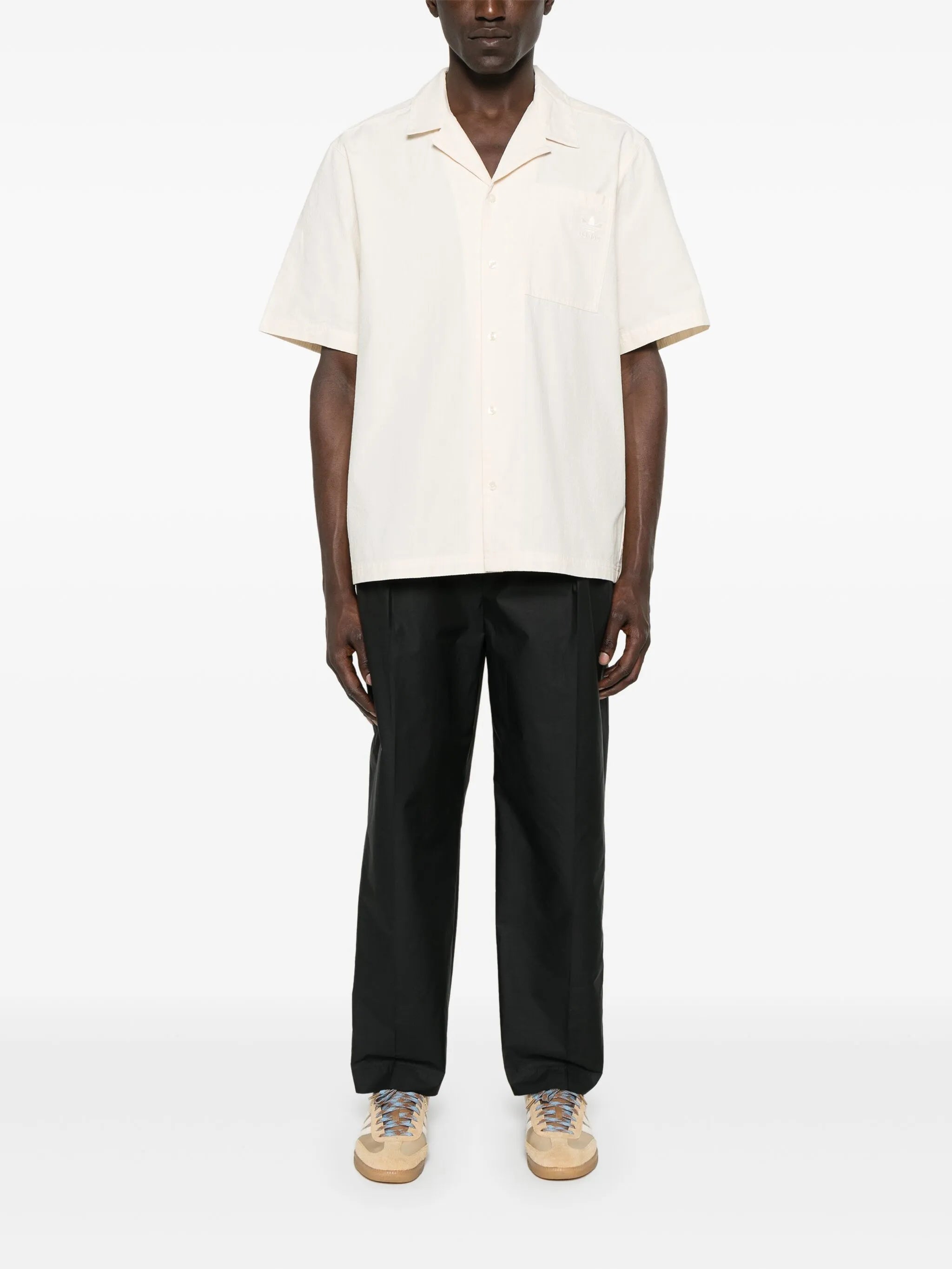 almond beige front button fastening chest patch pocket embroidered logo at the chest short sleeves