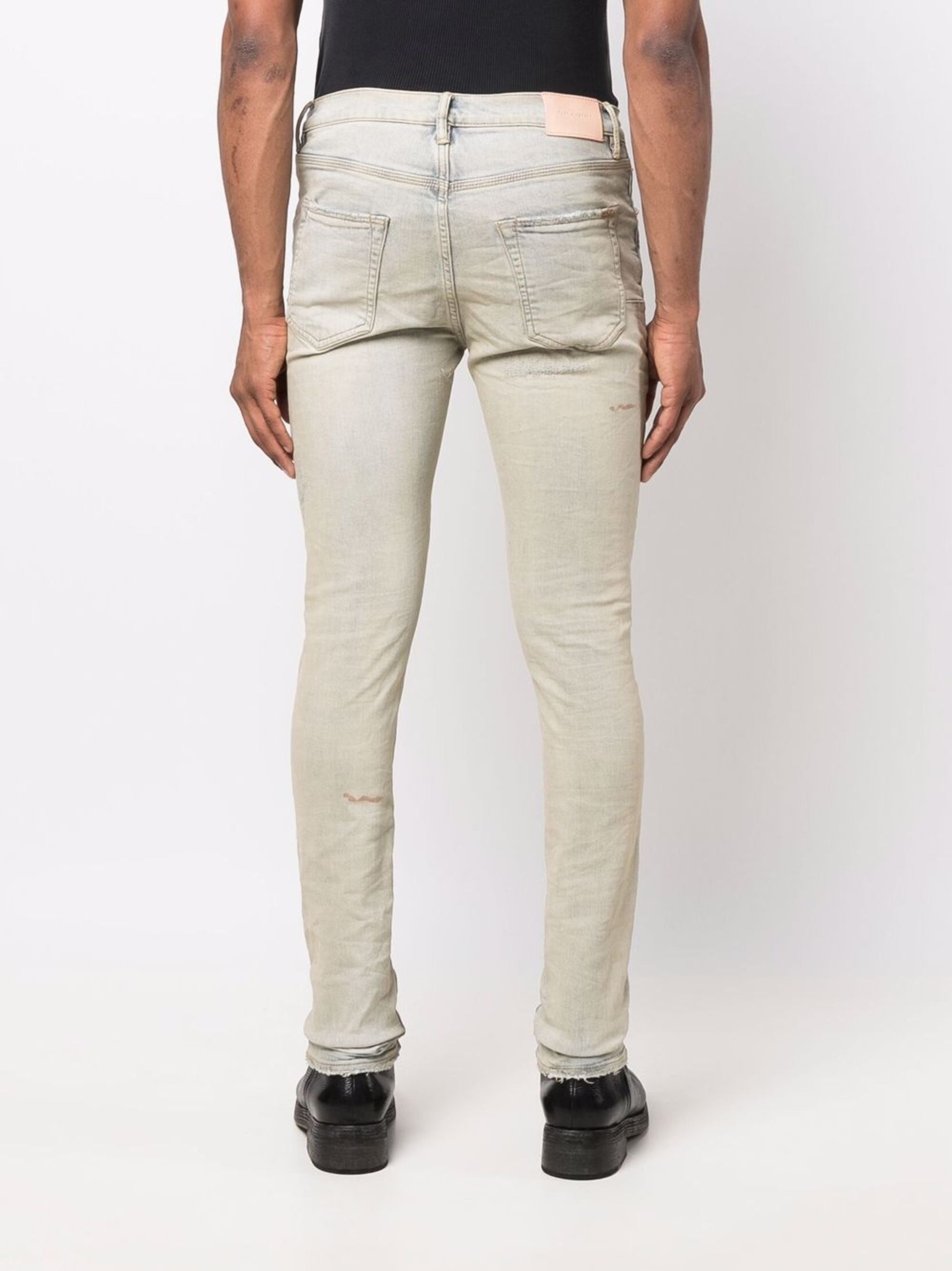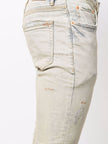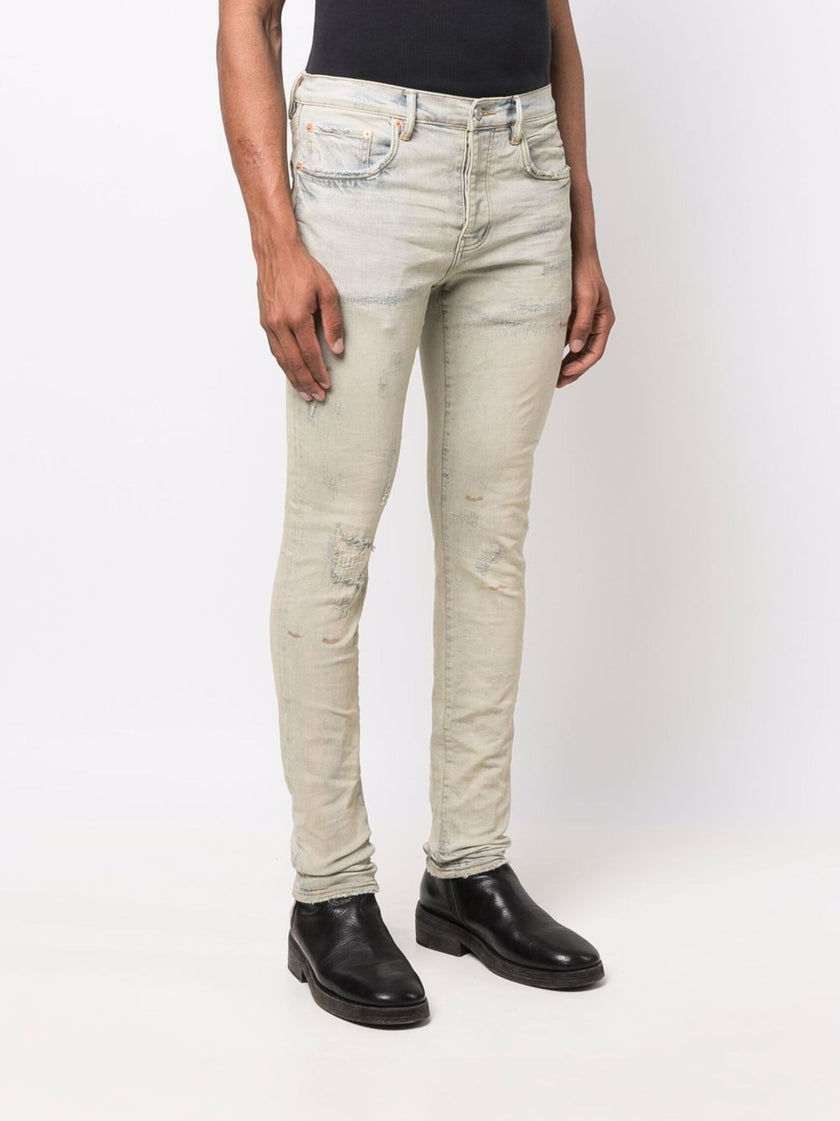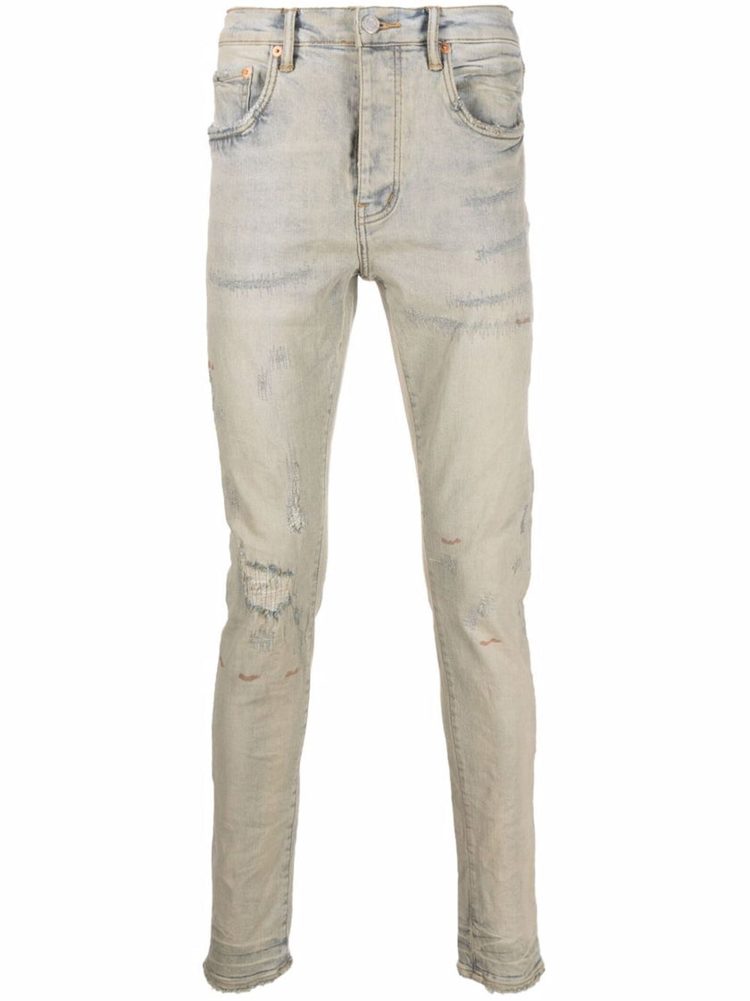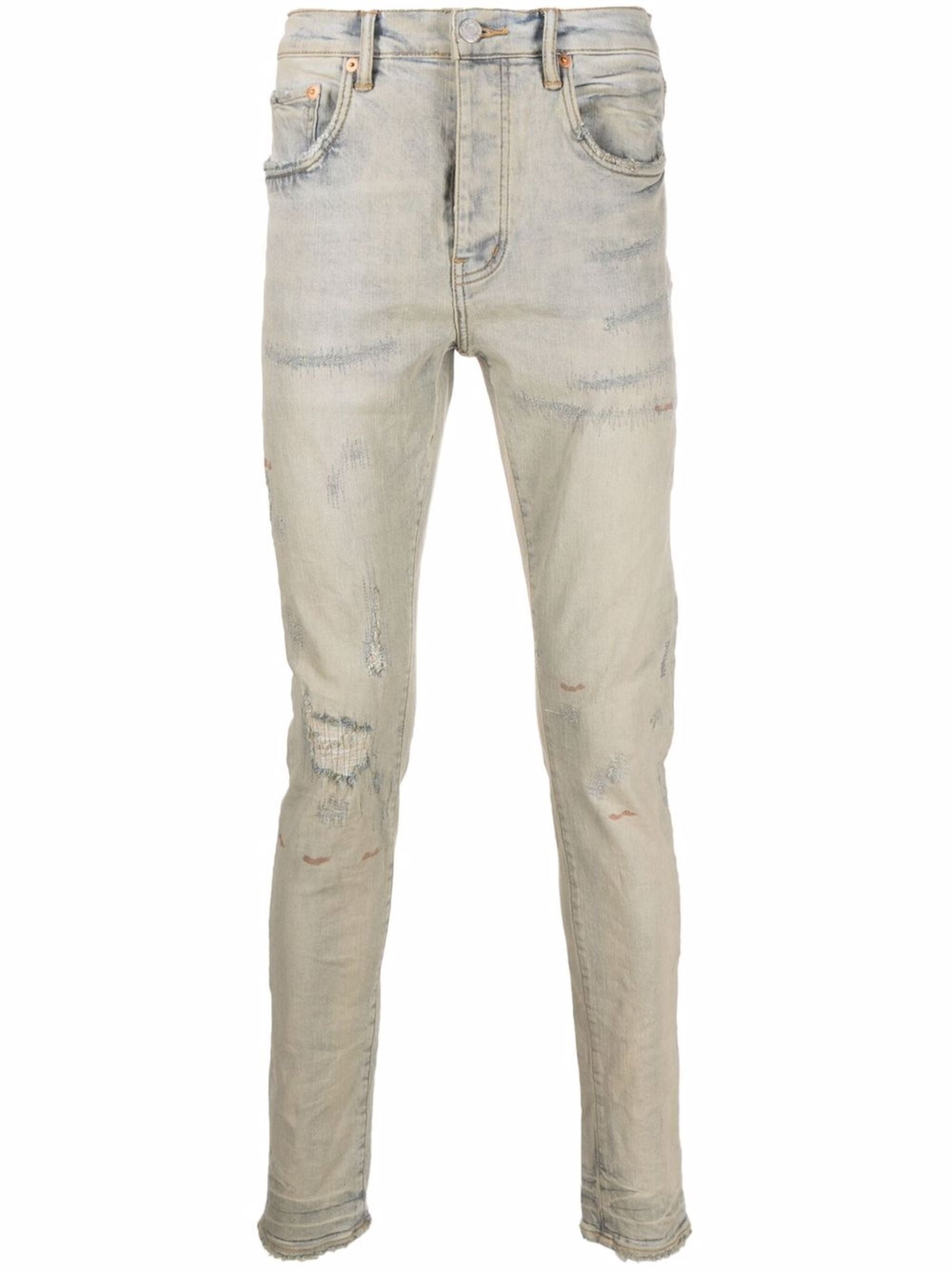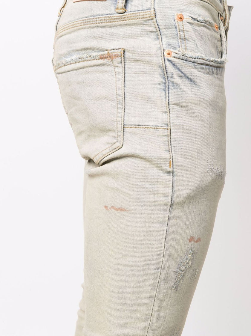 ash blue cotton blend distressed effect washed denim belt loops button fly fastening classic five pockets skinny cut