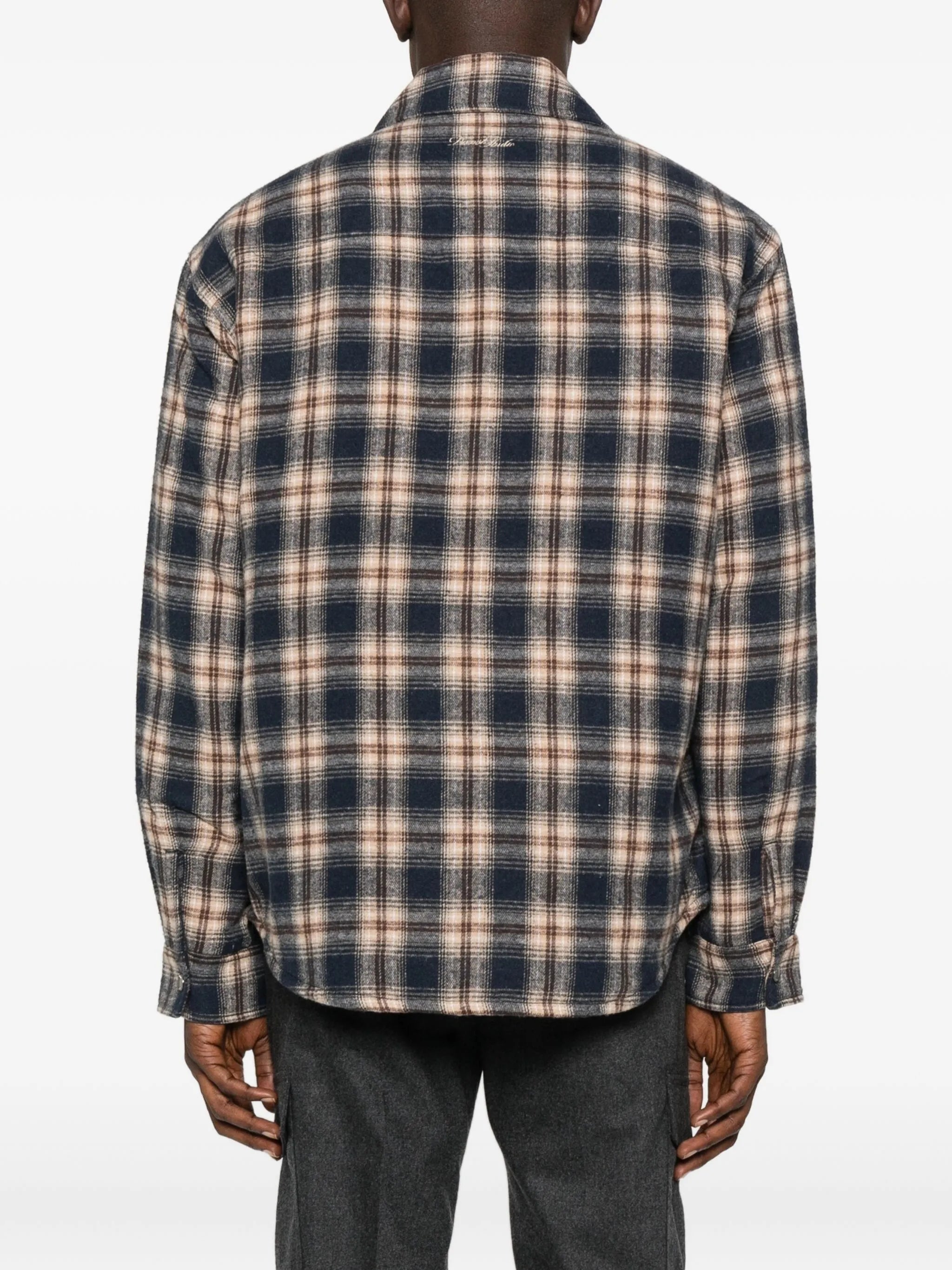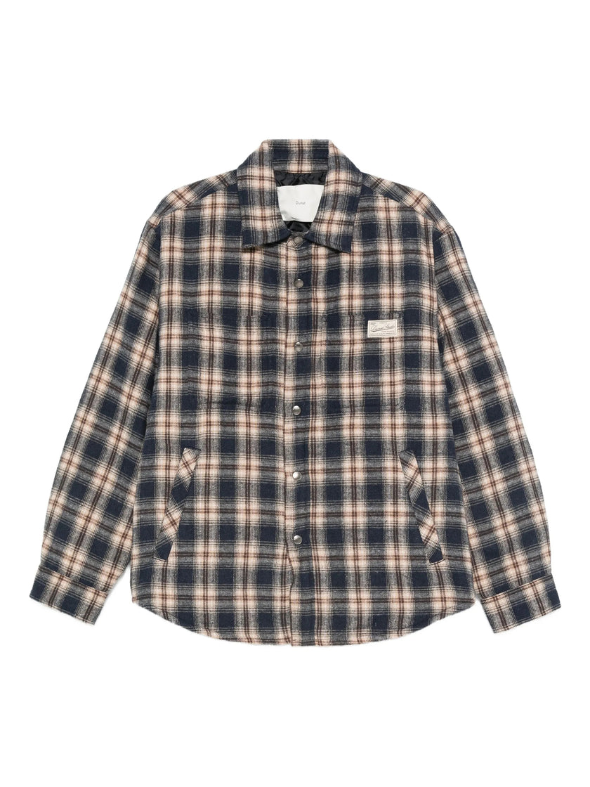 navy blue checked pattern side slit pockets front button fastening long sleeves