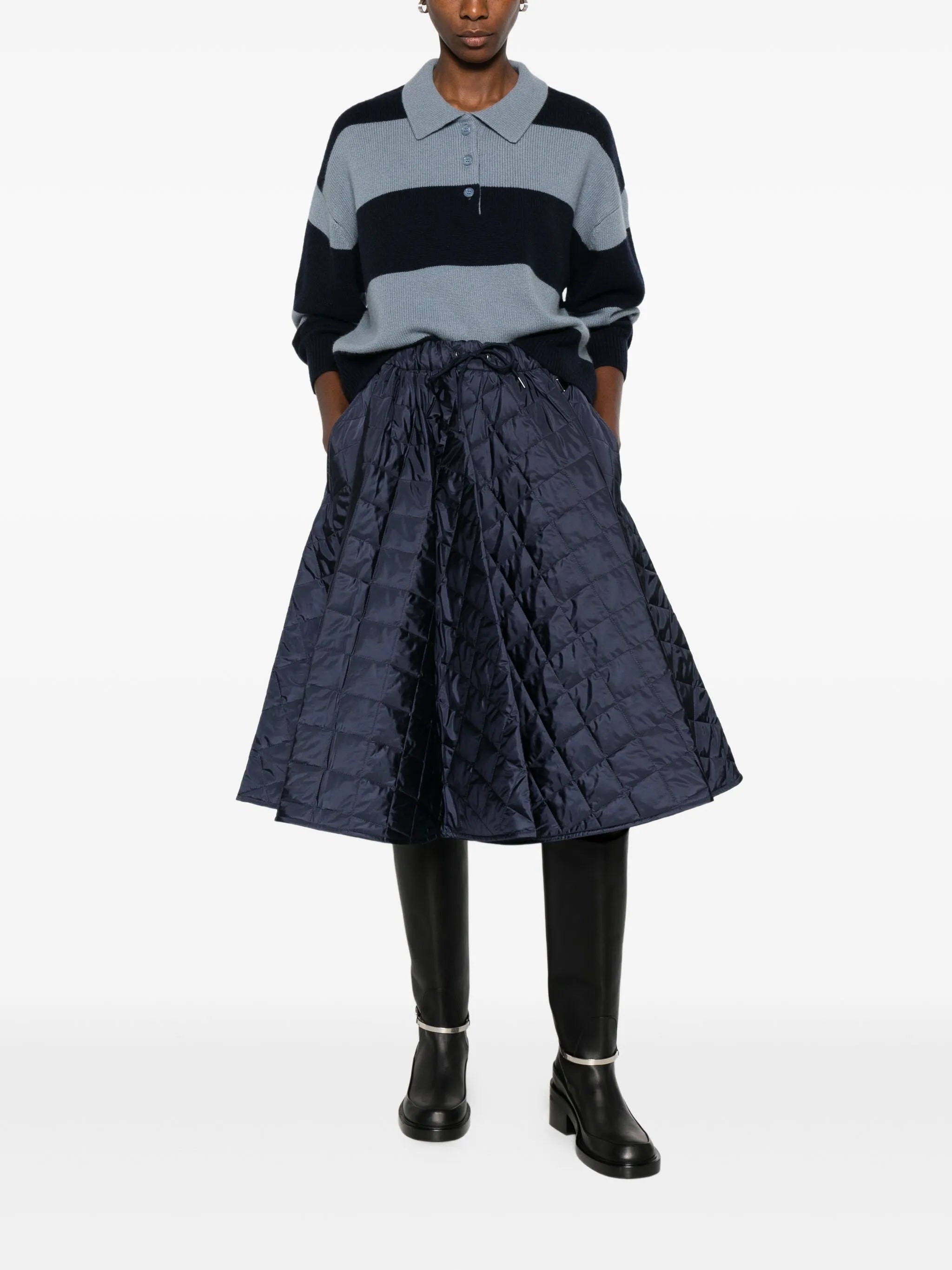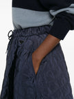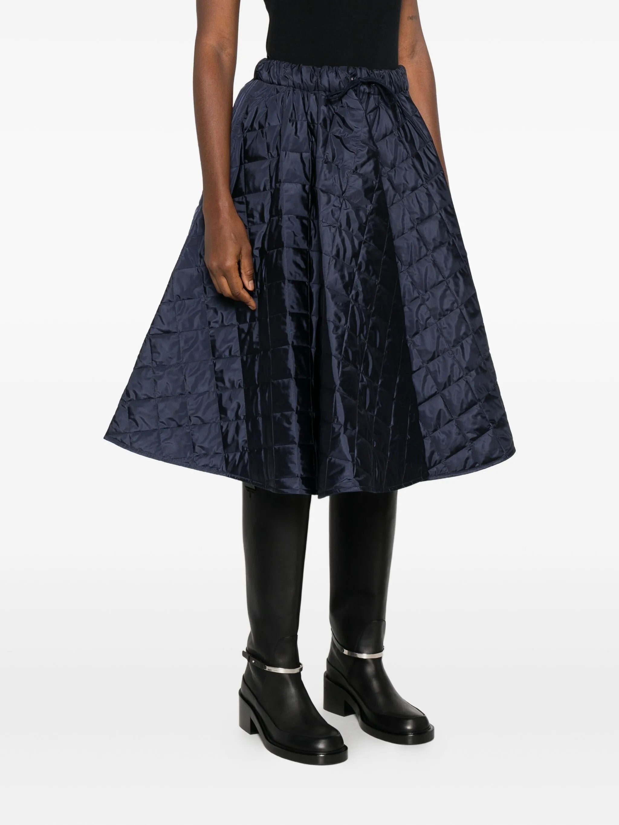 dark blue quilted drawstring fastening elasticated waistband A-line shape