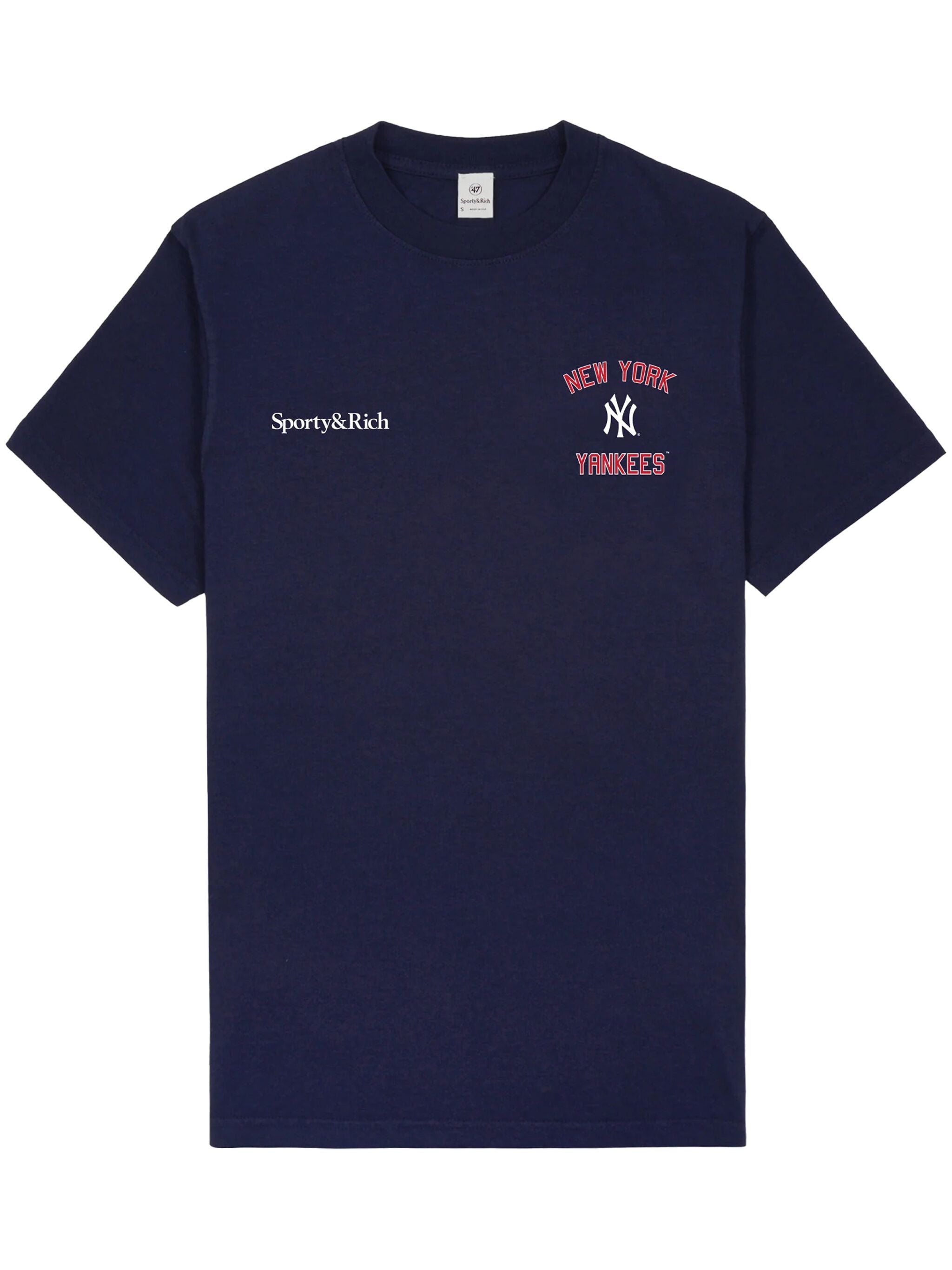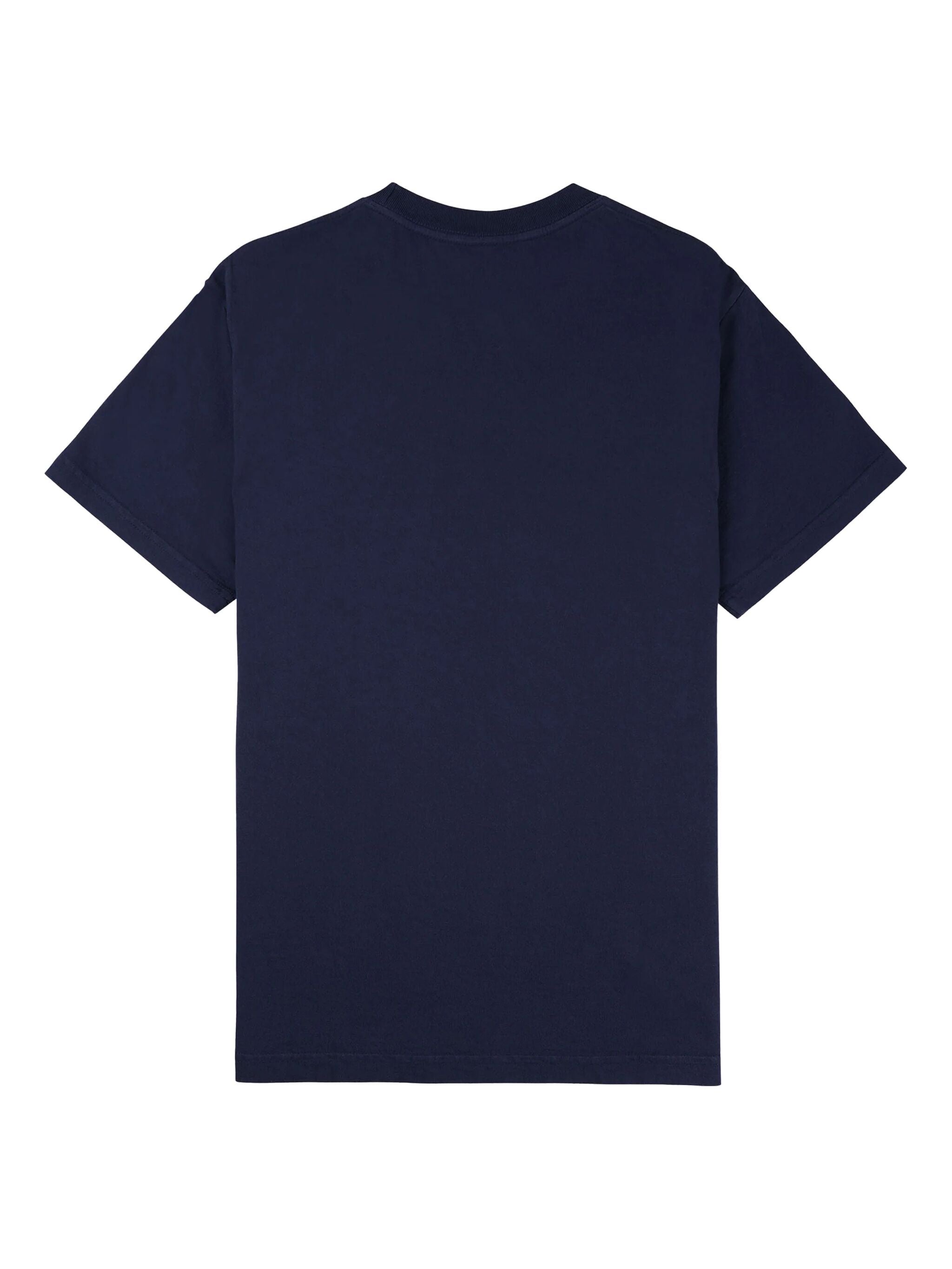 navy blue cotton jersey texture crew neck logo print to the front short sleeves straight hem When buying this unisex item, keep in mind that it is graded in standard men's sizing.