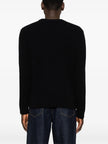 black wool ribbed knit crew neck long sleeves straight hem
