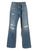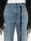 light blue front button and zip fastening belt loops classic five pockets ripped detailing