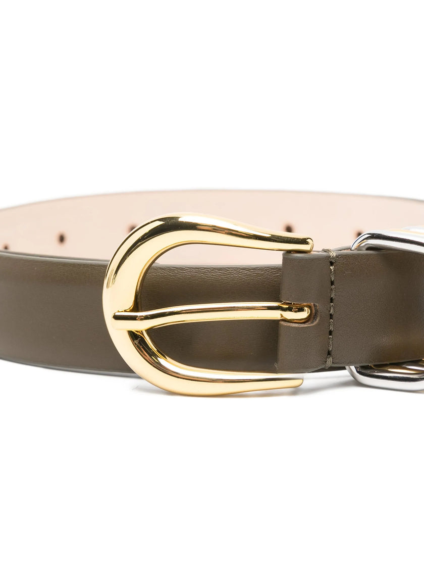 olive green 24K gold-plated buckle leather construction buckle fastening