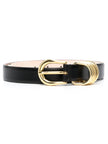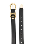 black gold-tone hardware buckle fastening ring hardware detailing punched holes adjustable fit