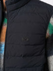 navy blue feather down padded design sleeveless front zip fastening logo patch at the chest