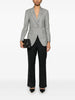light grey front button fastening shoulder pads two side flap pockets American rear vents