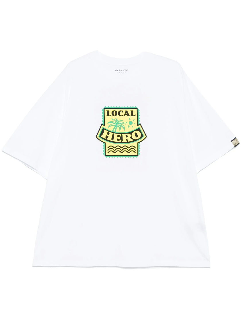 white crew neck drop shoulder graphic print to the front When buying this unisex item, keep in mind that it is graded in standard men's sizing.