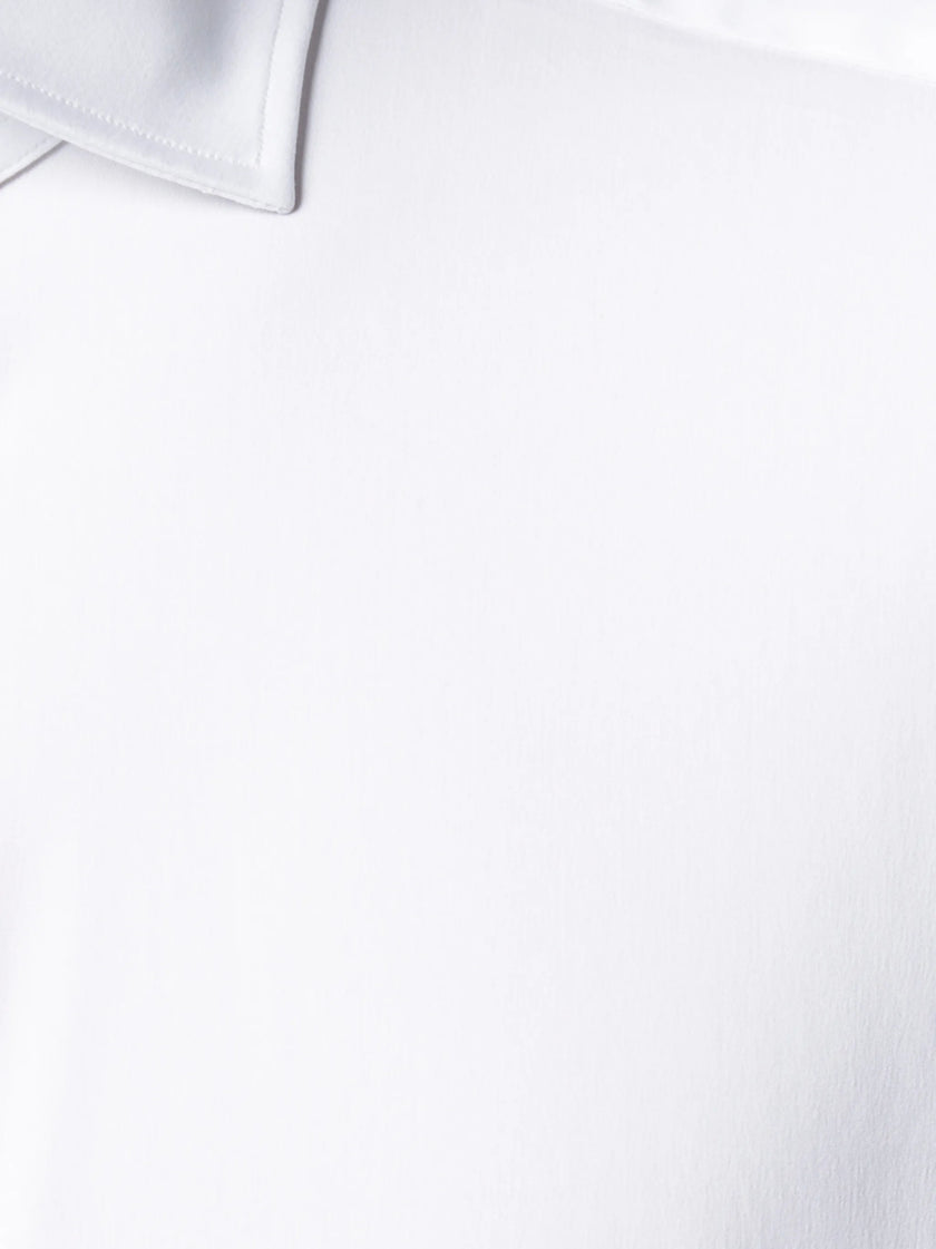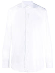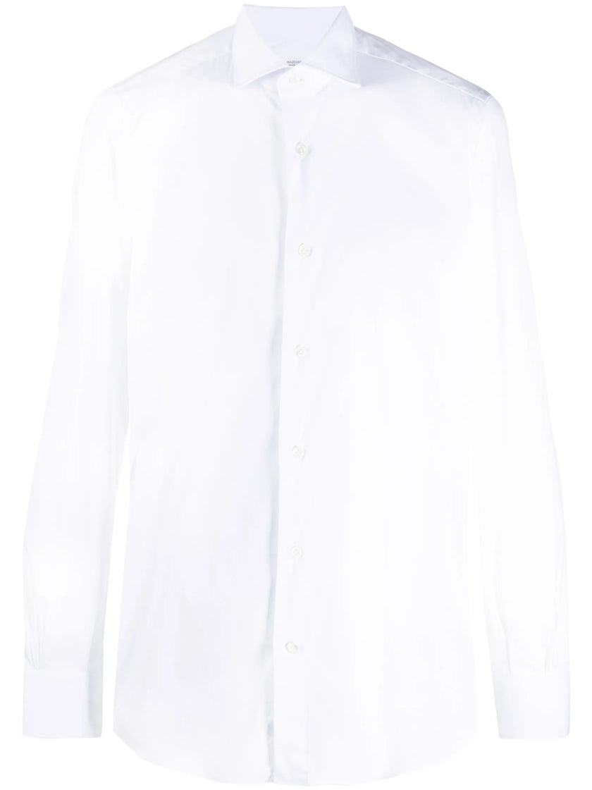 White cotton blend plain buttoned shirt from Mazzarelli featuring a spread collar, a front button fastening, long sleeves, button cuffs and a curved hem.