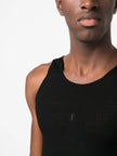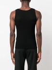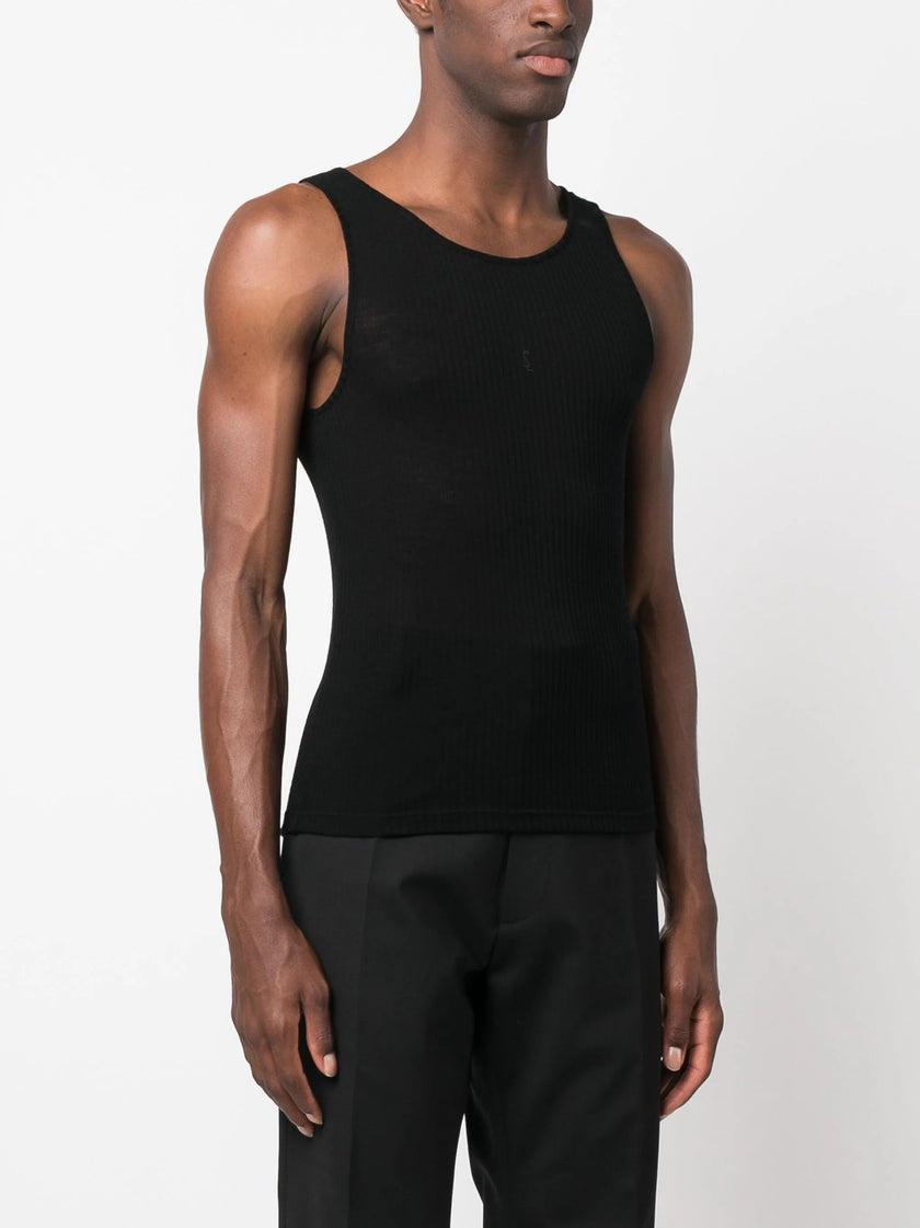 black wool fine ribbed embroidered logo at the chest round neck sleeveless straight hem